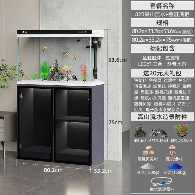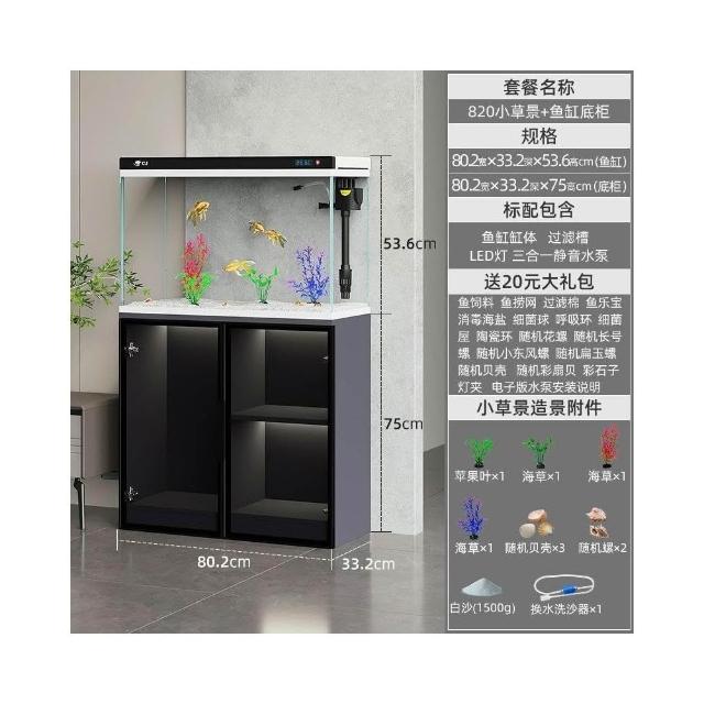 新款魚缸客廳小型落地玻璃 金魚缸家用免換水 造景帶櫃子立式水族箱