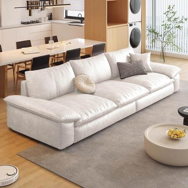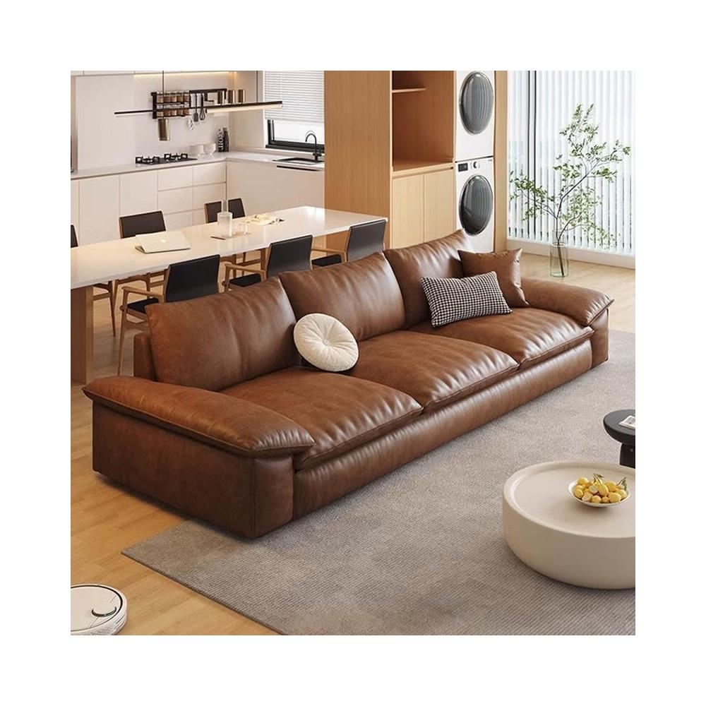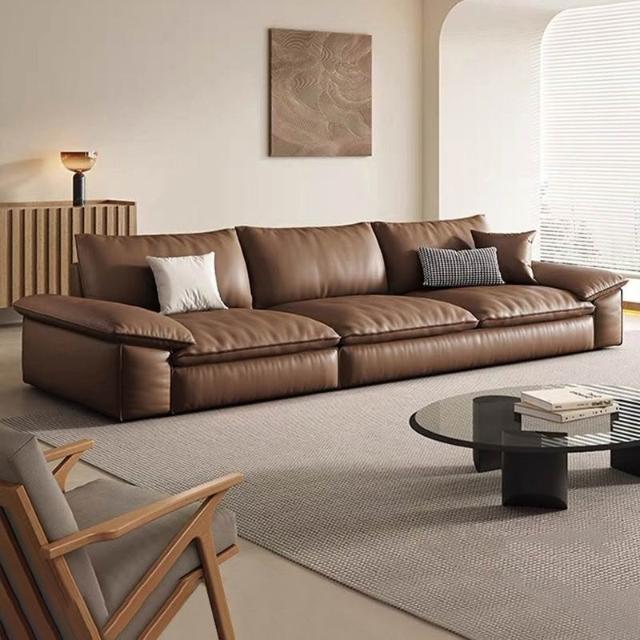 真皮沙發意式極簡復古風沙發 客廳現代簡約辦公室帆船直排皮藝雲朵沙發