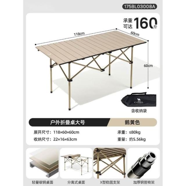 駱駝戶外折疊桌 鋁合金野餐桌子 露營桌裝備蛋卷桌 套裝野外野營桌椅