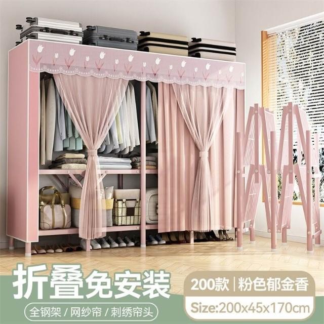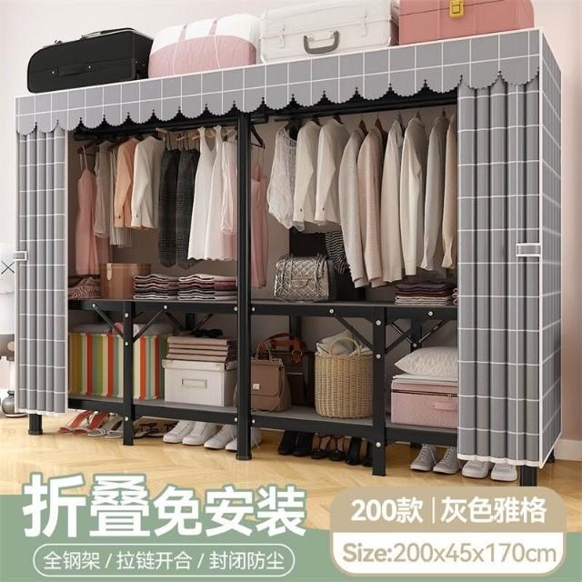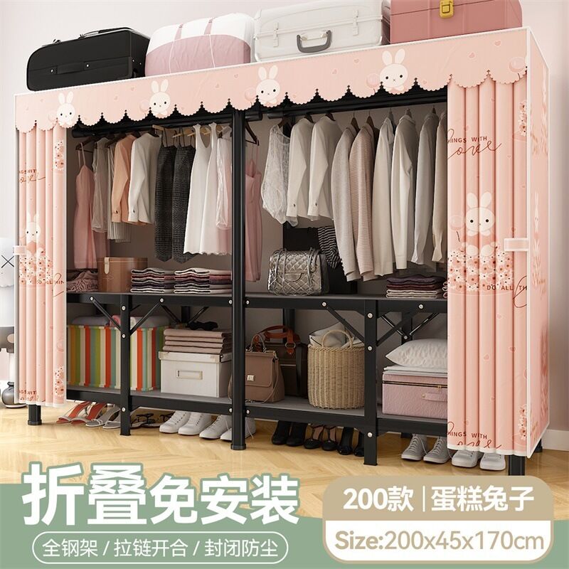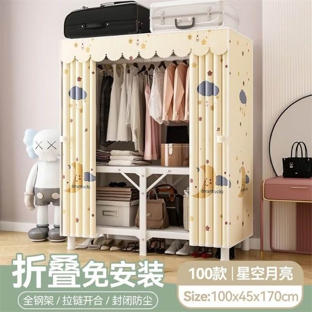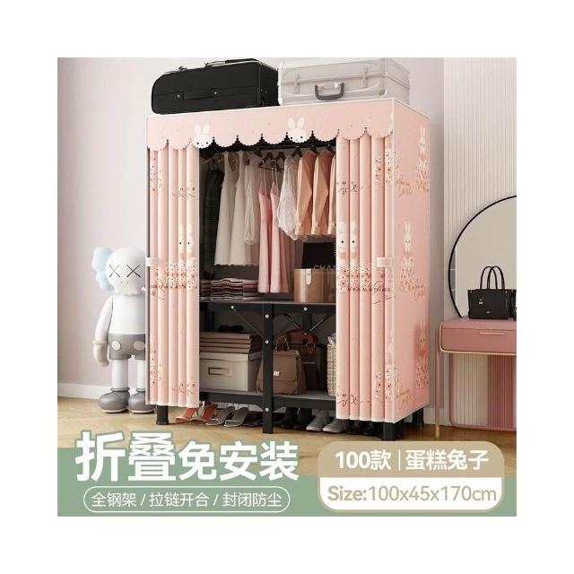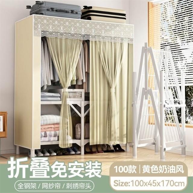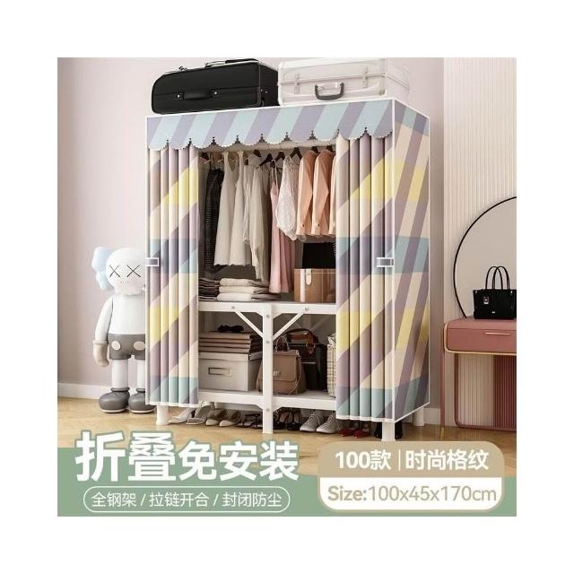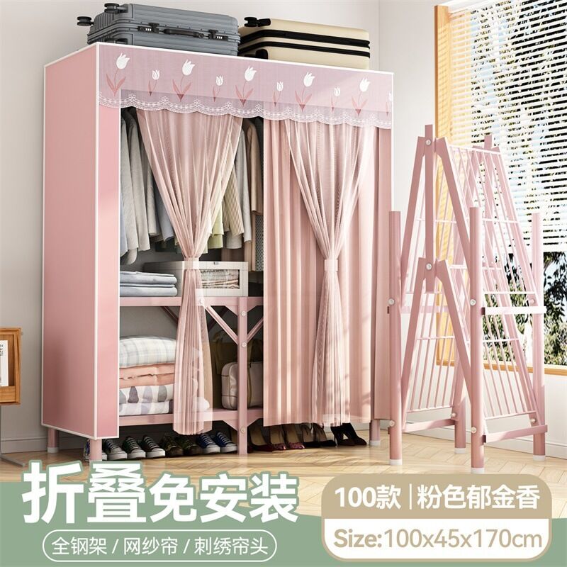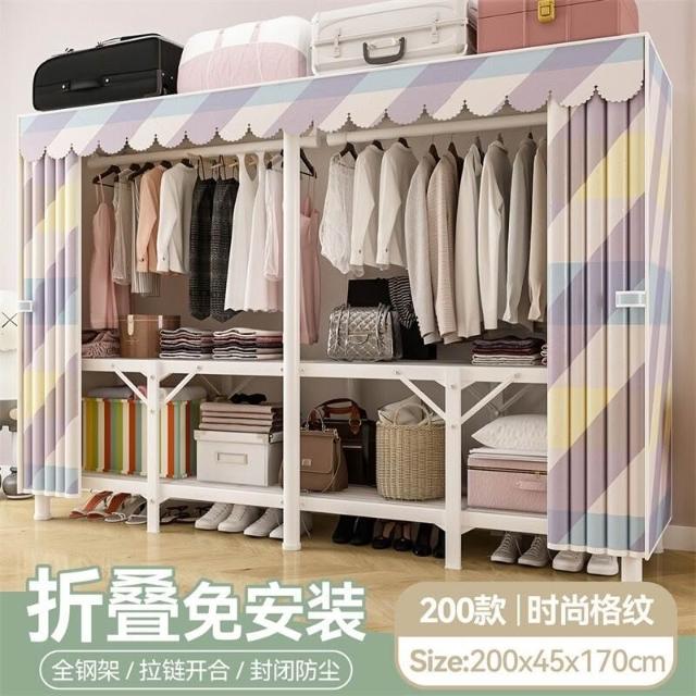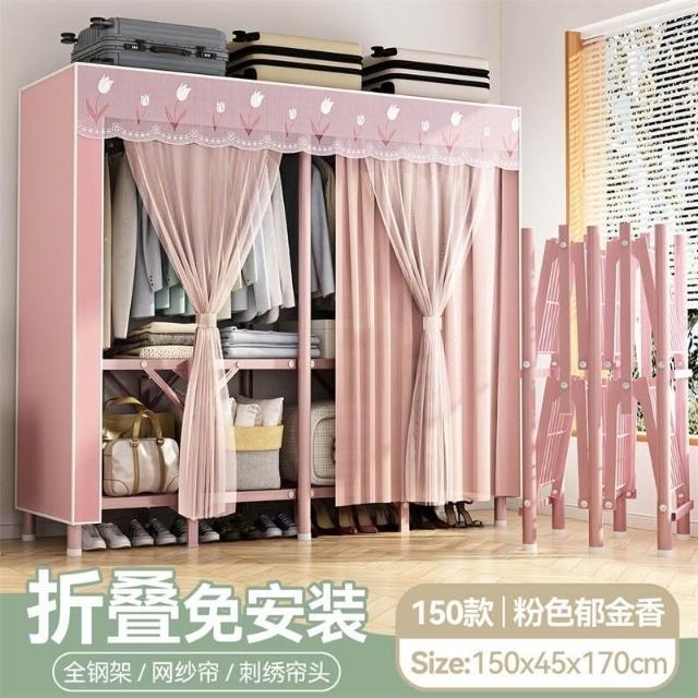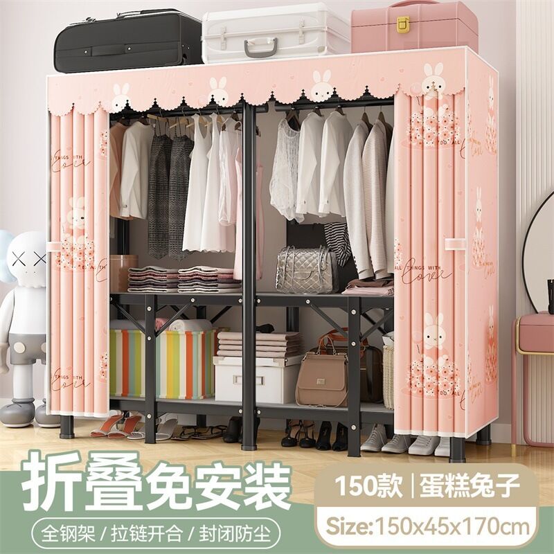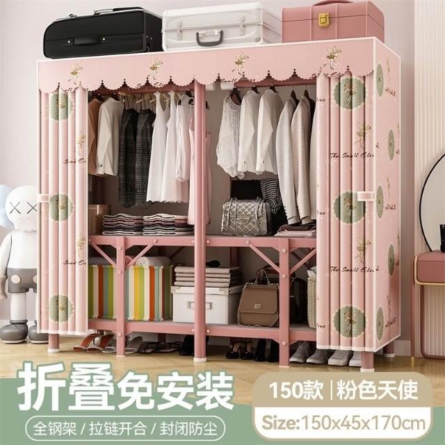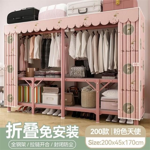 免安裝折疊鋼架結構簡易布衣櫃 鋼管加粗家用臥室結實全掛式衣櫥