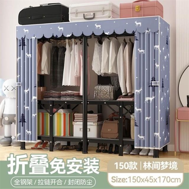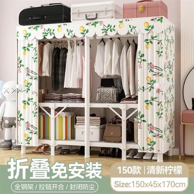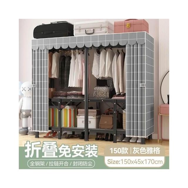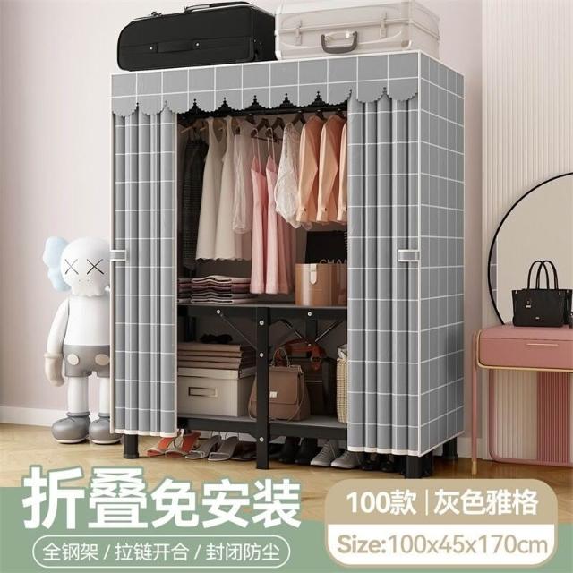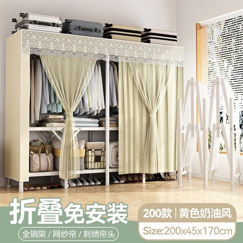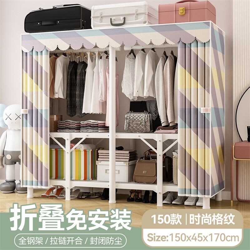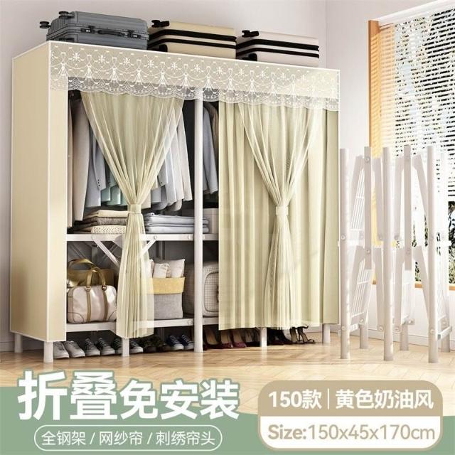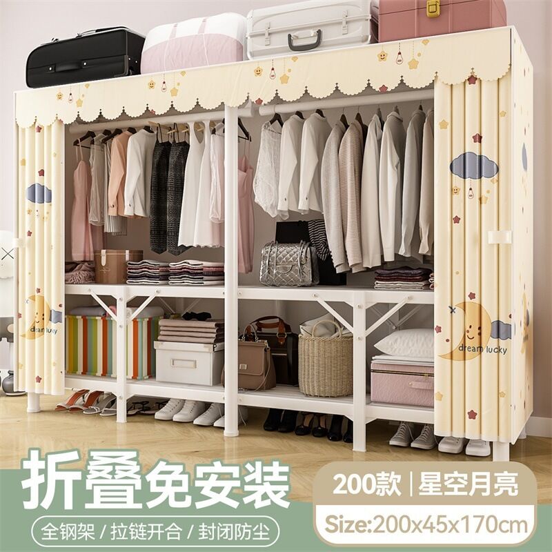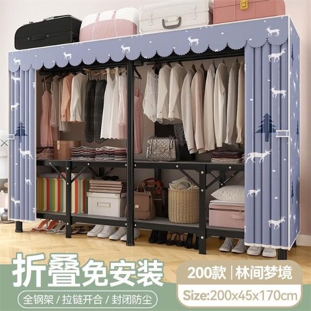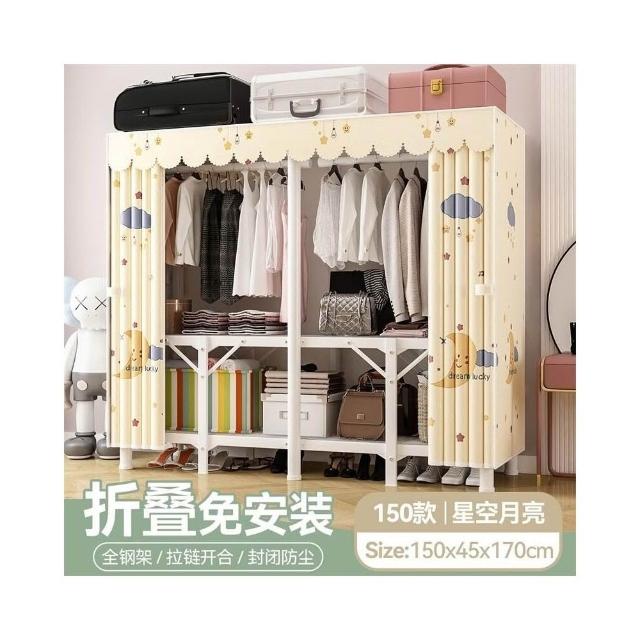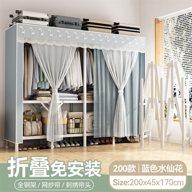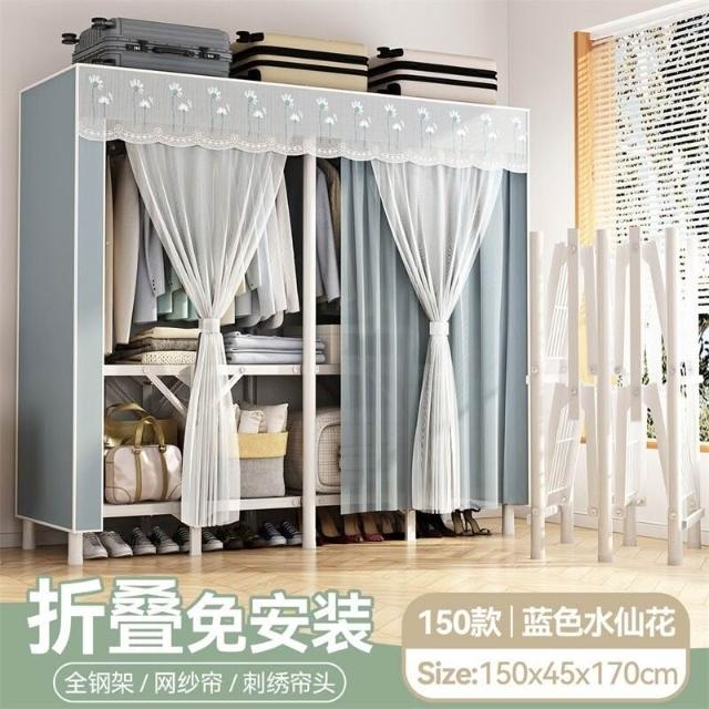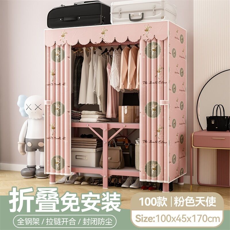 免安裝折疊鋼架結構簡易布衣櫃 鋼管加粗家用臥室結實全掛式衣櫥