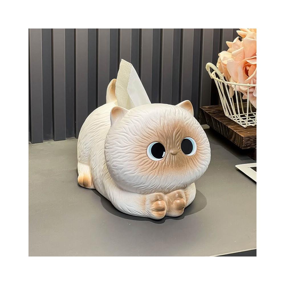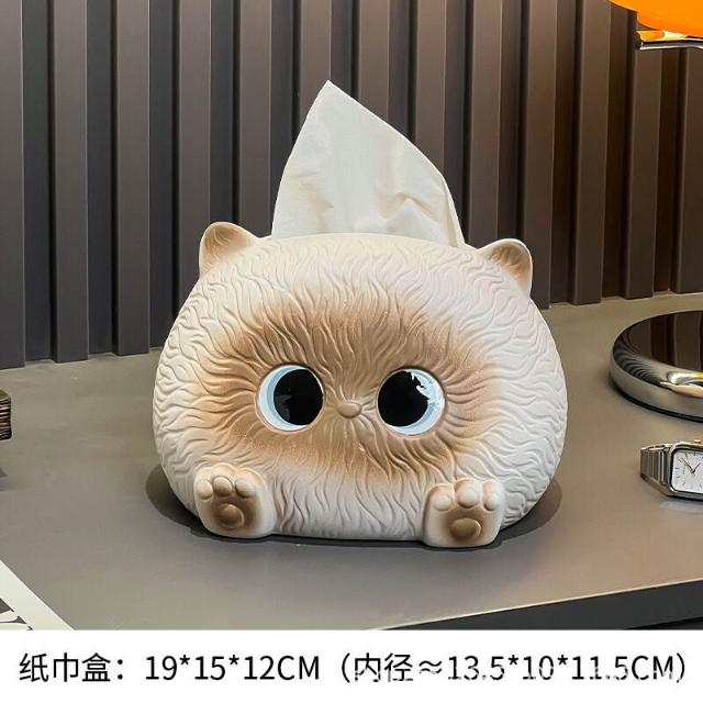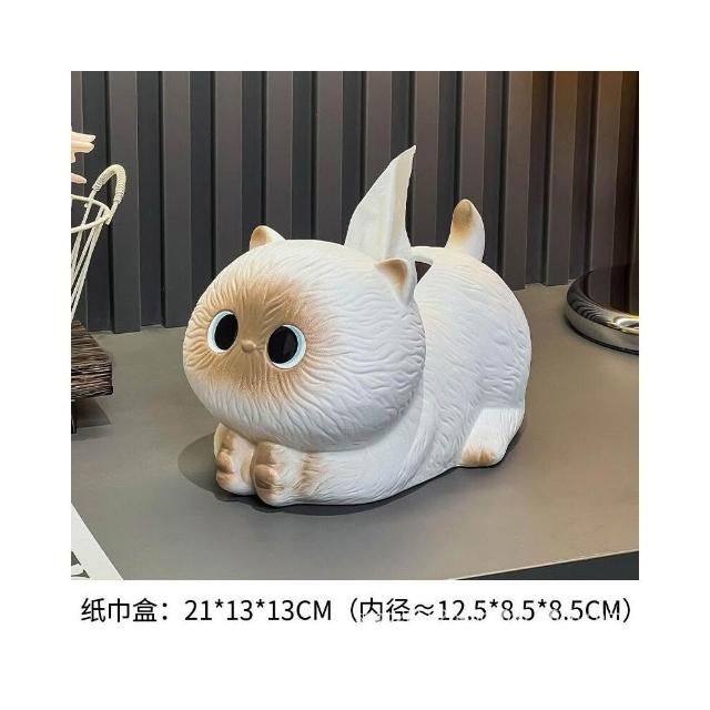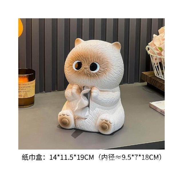 卡通貓咪紙巾盒 客廳桌面陶瓷抽紙盒 家用高端擺件創意餐巾紙盒新款
