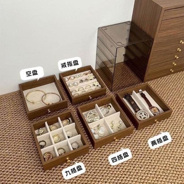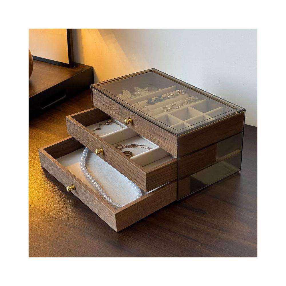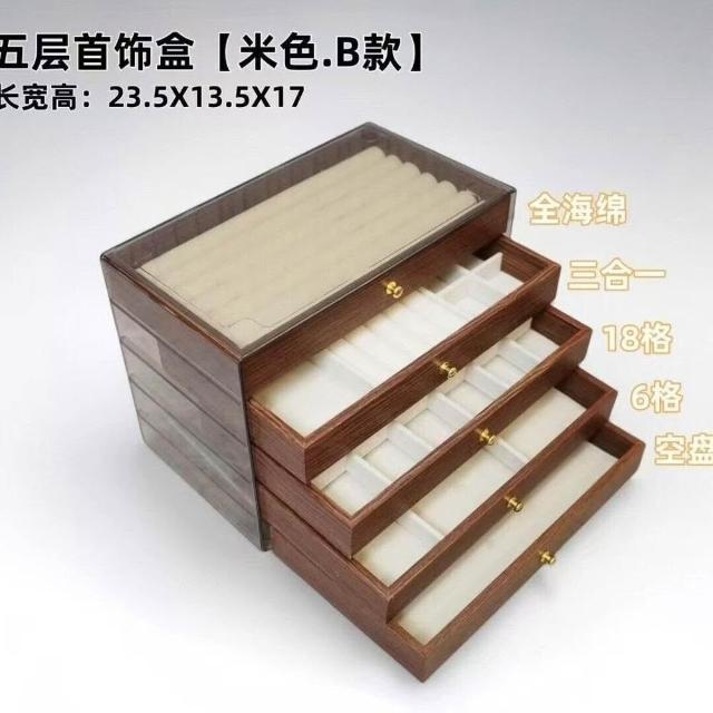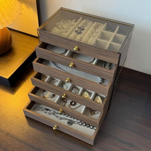 首飾收納盒 高檔精致胡桃木紋5層大容量 耳釘項飾頭飾手飾收納盒子