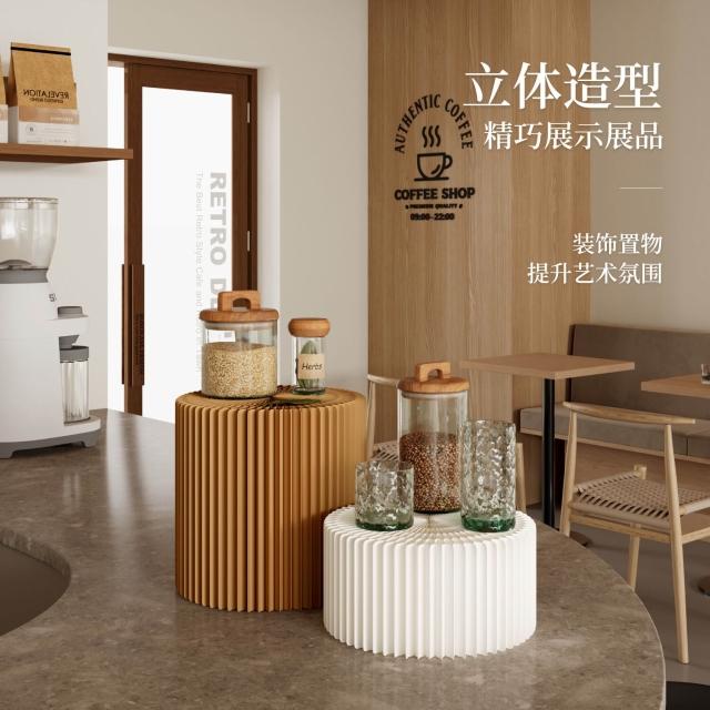 直播間圓柱展示臺 圓形桌面擺放 產品拍攝陳列臺折疊紙質創意展示架