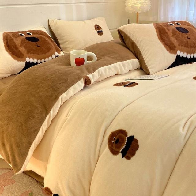 A類母嬰級冬季牛奶絨床品四件套 珊瑚絨加厚被套床單加絨法蘭絨
