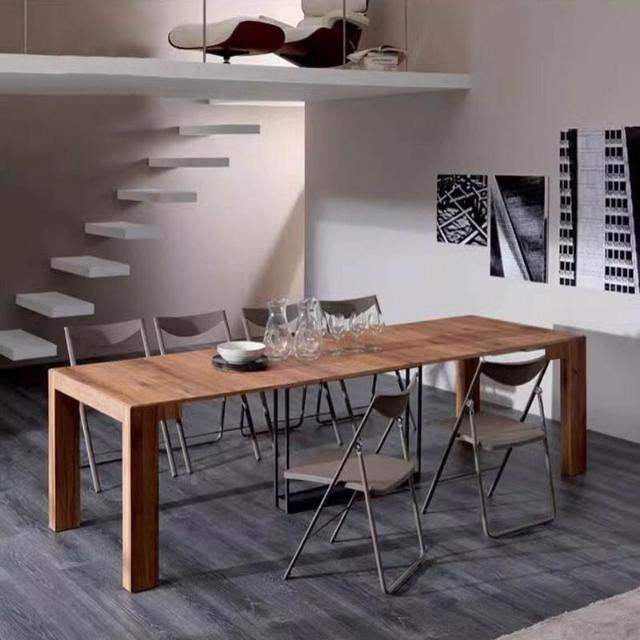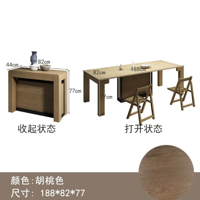 實木折疊餐桌 伸縮北歐長方形可折疊飯桌 家用小戶型隱形餐桌椅組合