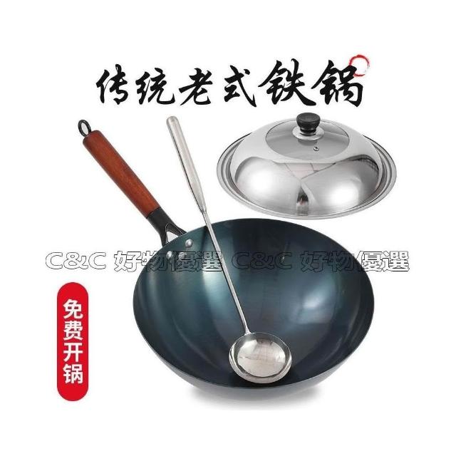 🔥臺灣熱賣 章丘鐵鍋老式家用炒鍋燃氣灶適用手工鍛打無涂層圓底鍋炒勺炒菜鍋 不鏽鋼 蜂巢鋼 炒鍋 不沾鍋 深煎鍋