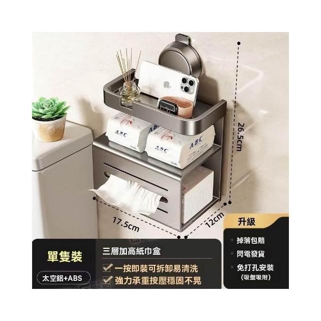 免打孔壁掛厠紙收納盒 盤衛生紙置物架 衛生間紙巾盒 浴室吸盤式紙巾架 廁所紙巾盒 免打孔壁掛 家用廁紙收納盒 面紙盒