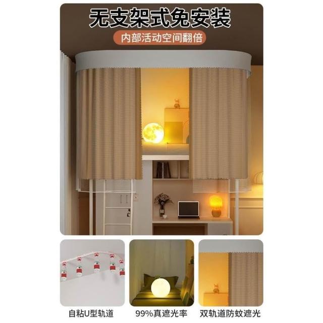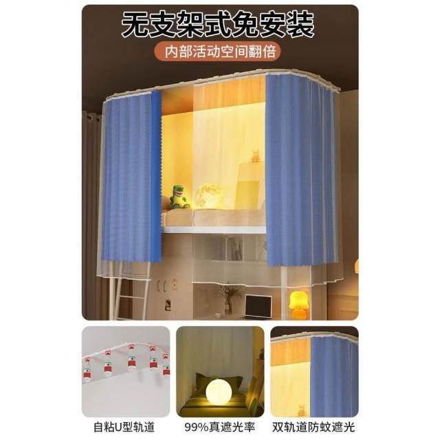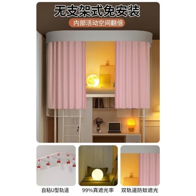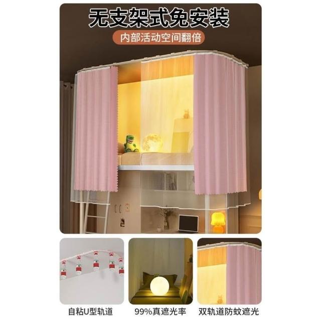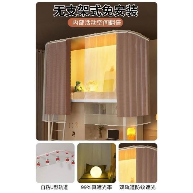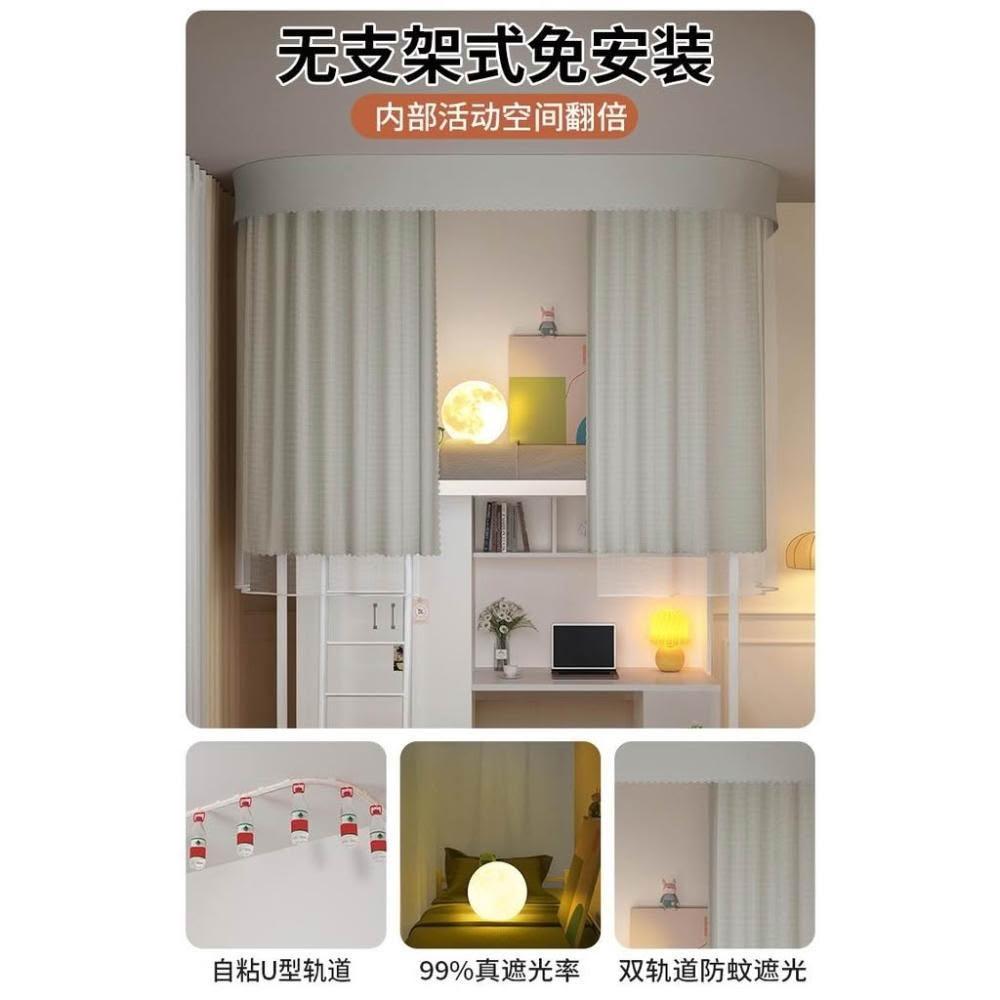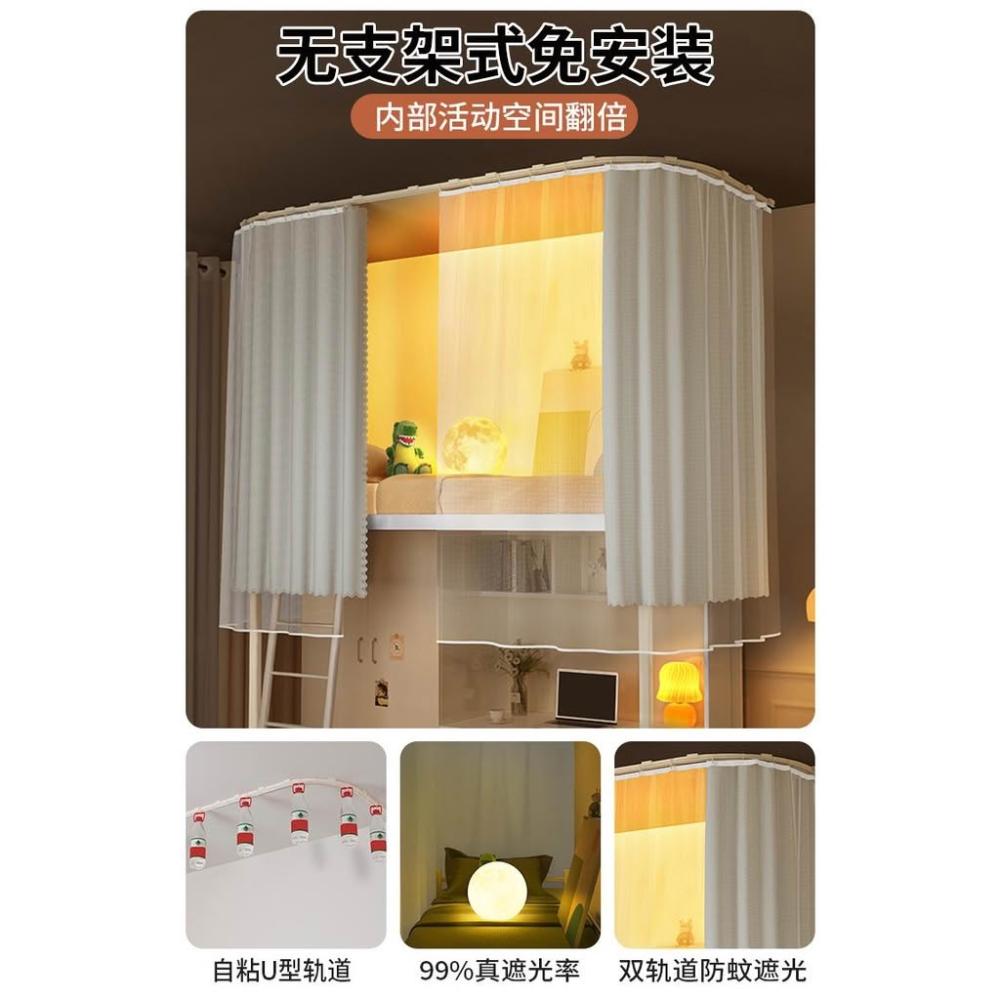 免運 吸頂u型軌道床簾遮光簾 蚊帳大學生宿舍專用一體式上下鋪免支架蚊帳