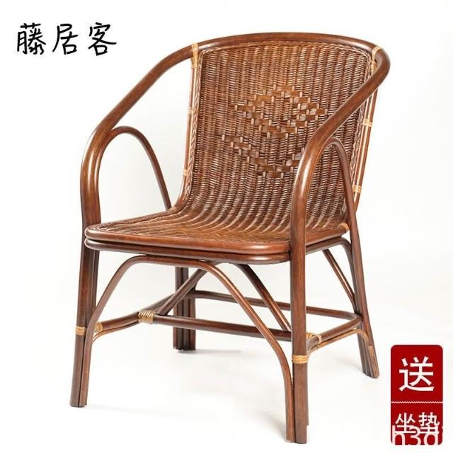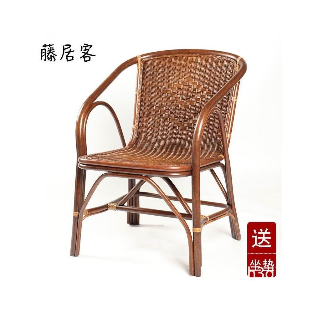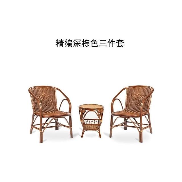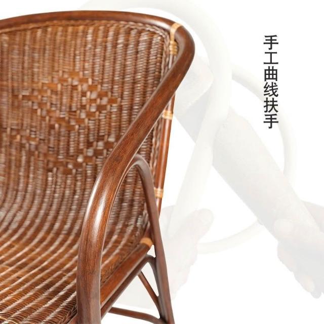 超優惠-藤椅 傢用 單人 老人手工真藤編織椅子 陽臺客廳休閒藤椅靠背椅三件套