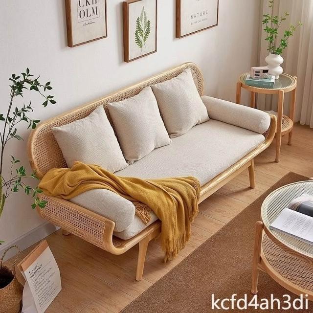 沙發椅 藤編沙發 小戶型沙發椅 白蠟木復古藤編單人雙人沙發辦公室客廳家用休閒藤椅三人小戶型