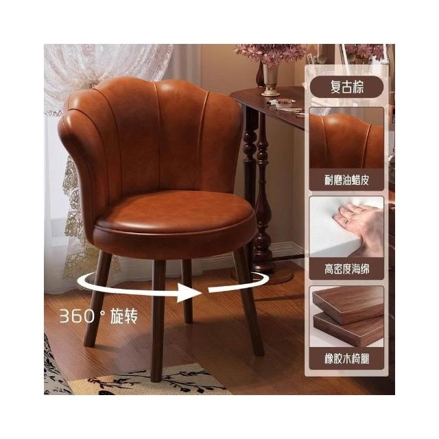梳妝椅 化妝椅 中古風實木化妝凳家用旋轉化妝椅梳妝台椅子靠背凳子女生臥室輕奢