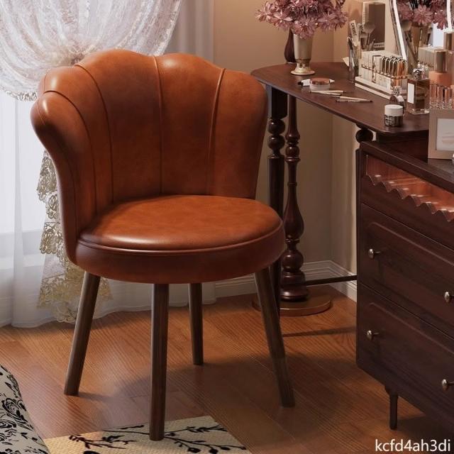 梳妝椅 化妝椅 中古風實木化妝凳家用旋轉化妝椅梳妝台椅子靠背凳子女生臥室輕奢