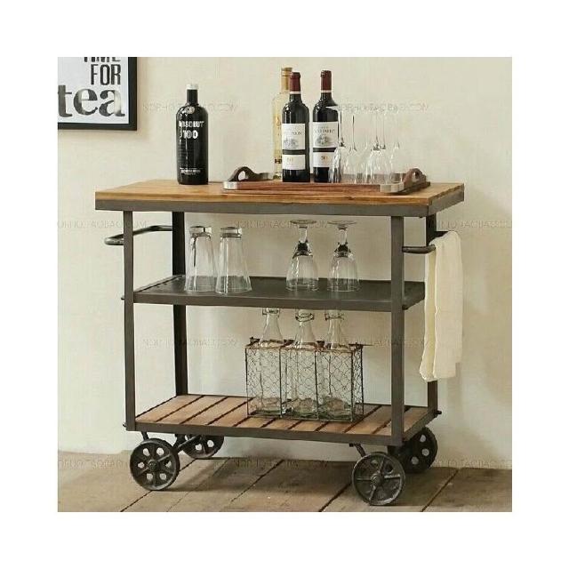 廚房收納櫃//餐櫃/切菜桌/中島電器櫃/收納櫃 美式置物架實木餐邊櫃移動複古鐵藝餐車酒吧小推車酒水車工業風