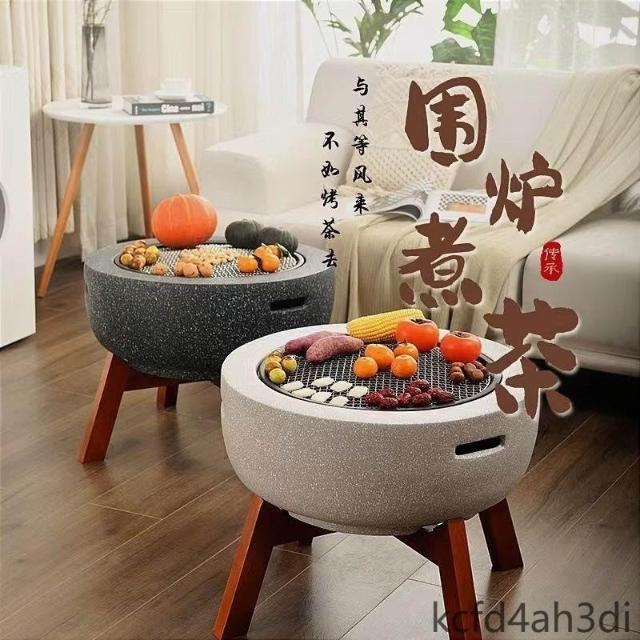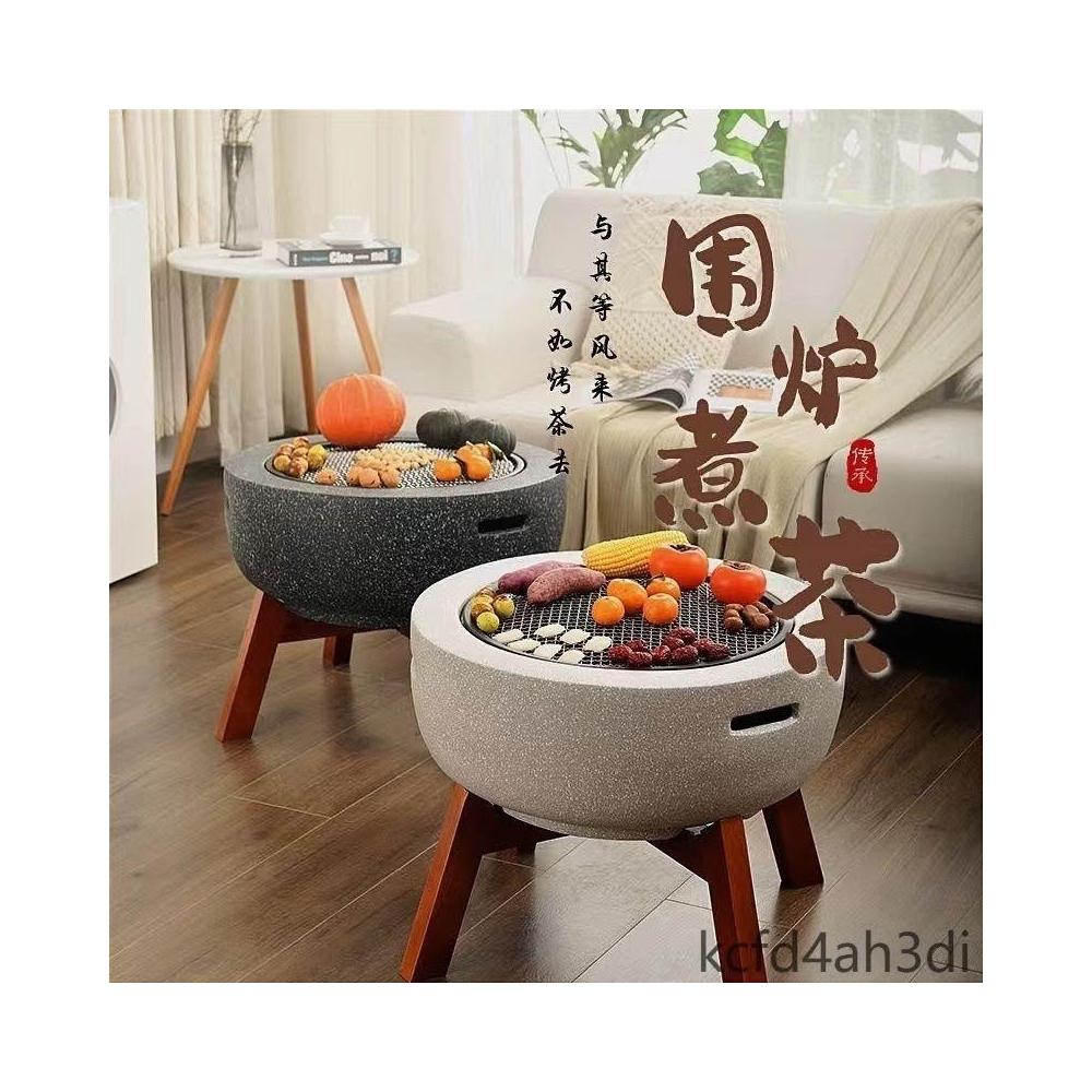 燒烤爐室內無煙碳烤箱庭院烤箱暖爐炭火爐圓形圍爐煮茶家用木炭燒烤爐老式陶土泥家用戶外迷你燒烤火鍋打邊爐烤