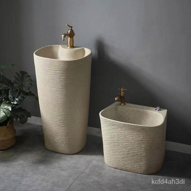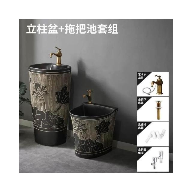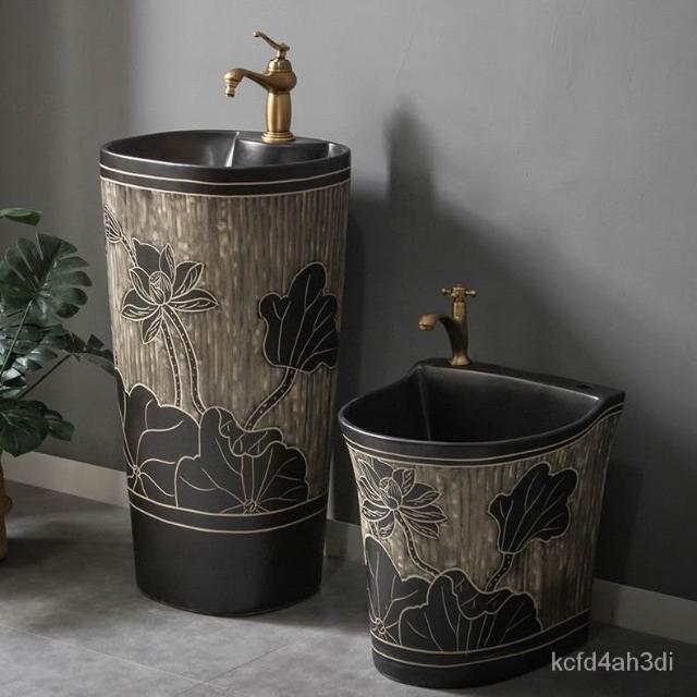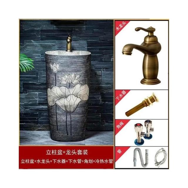 複古中式戶外洗手盆庭院立柱盆一體落地式花園洗手池室外洗臉盆 洗手盆 戶外洗手池 臉盆 立柱盆 洗手臺 落地式