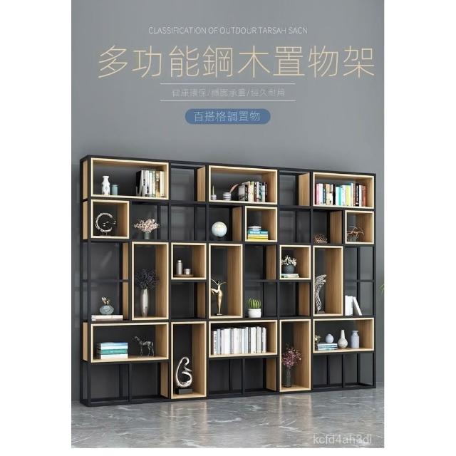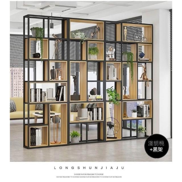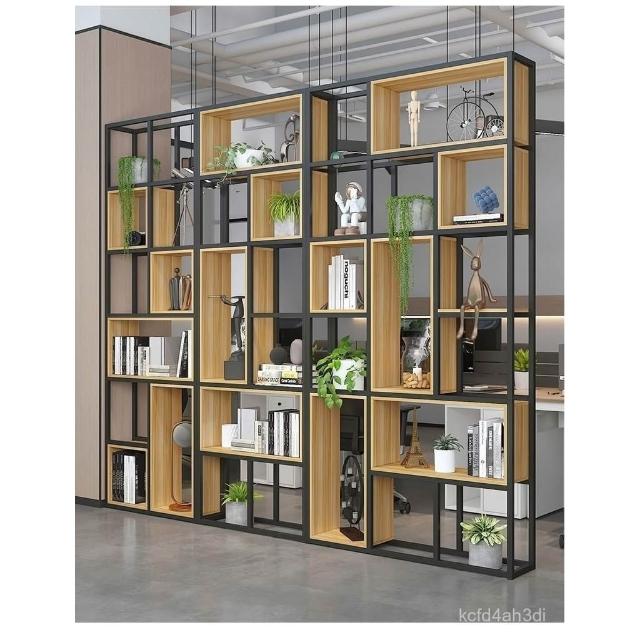 熱銷 鐵藝隔斷置物架 工業風收納儲物餐廳實木格子架 紅辦公室書架落地 隔斷書架 LOFT隔屏/擺飾架