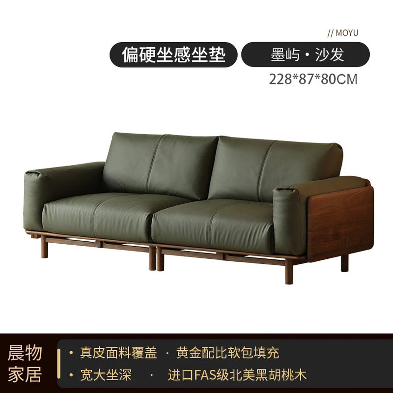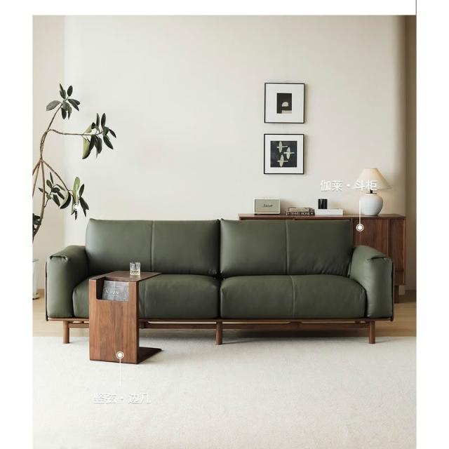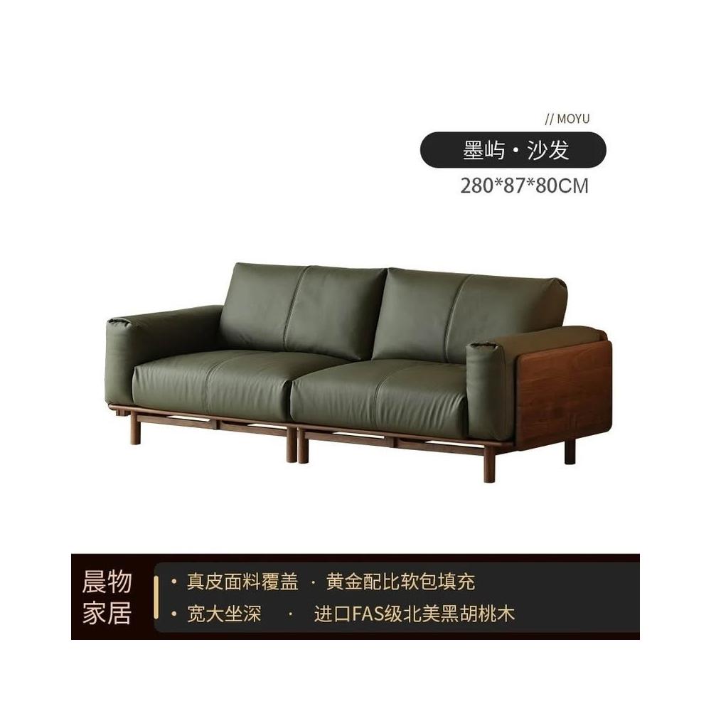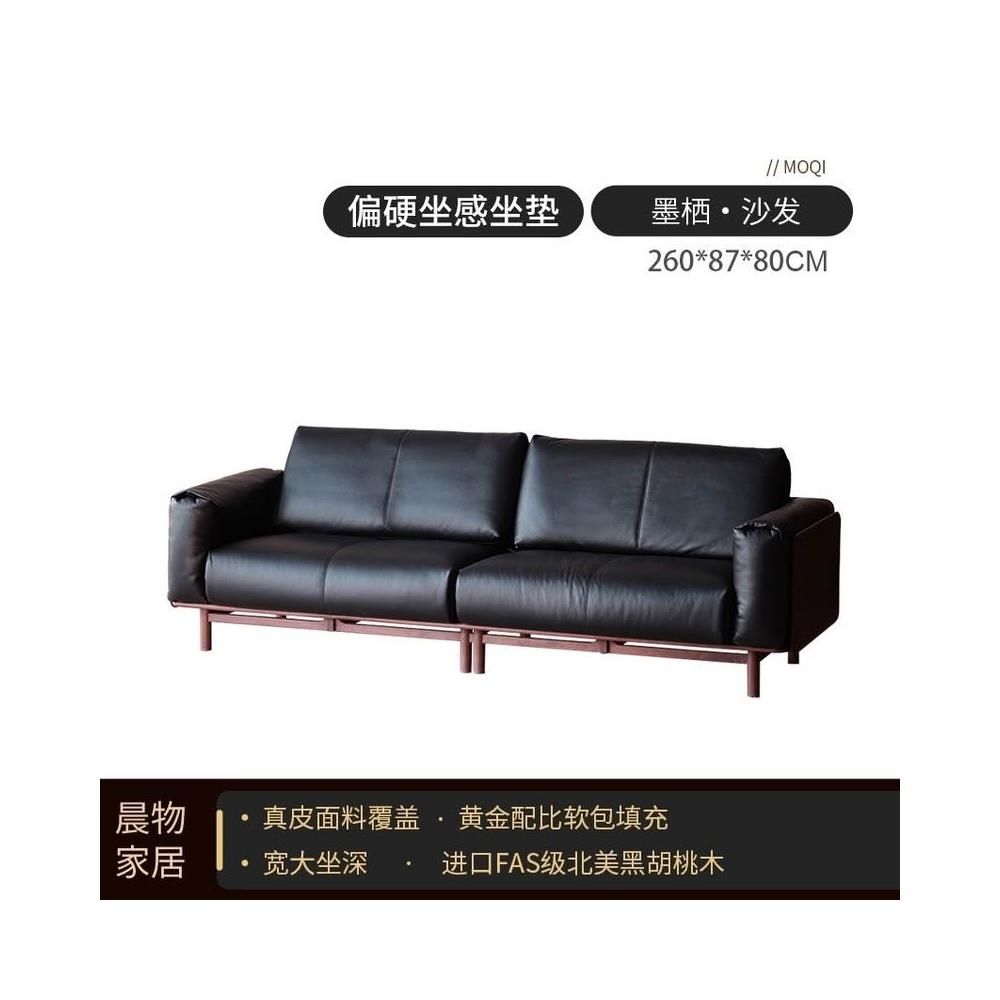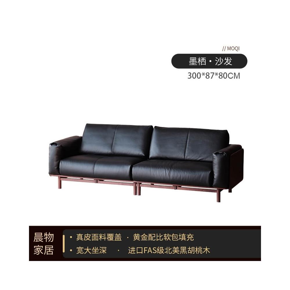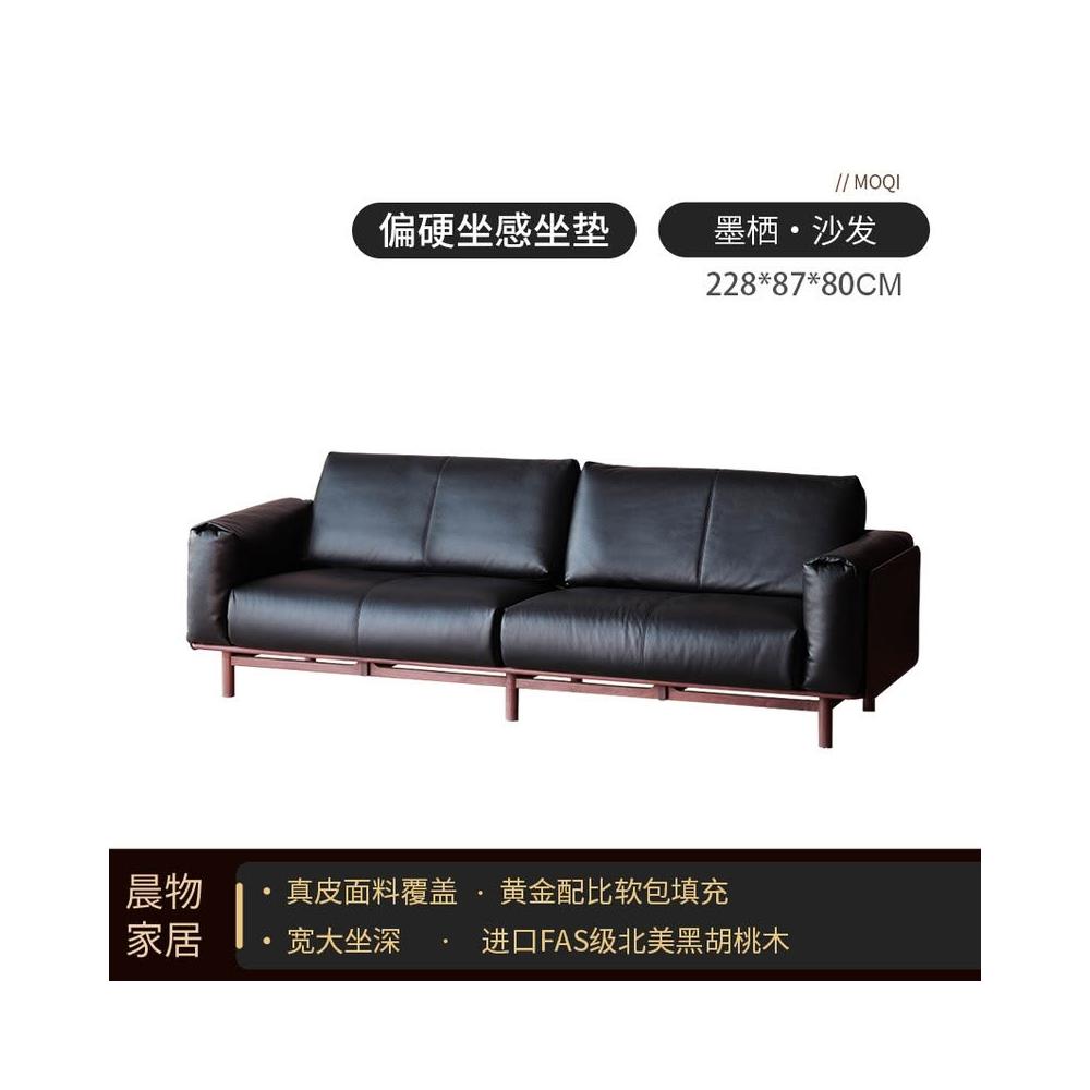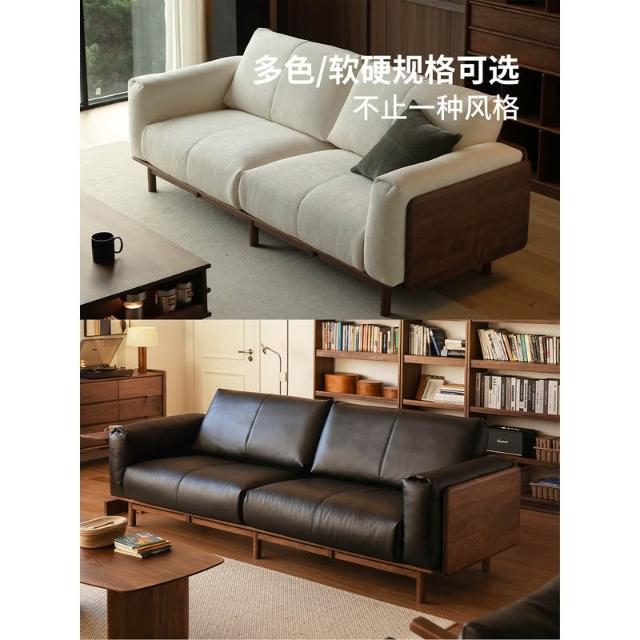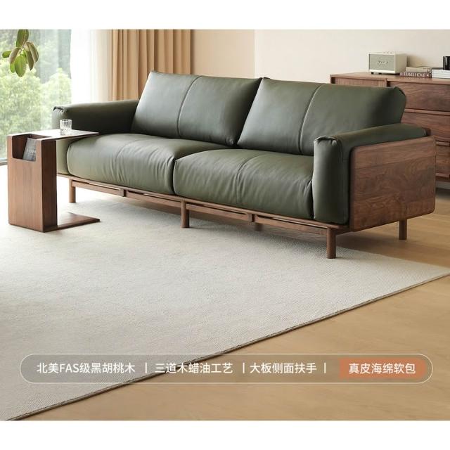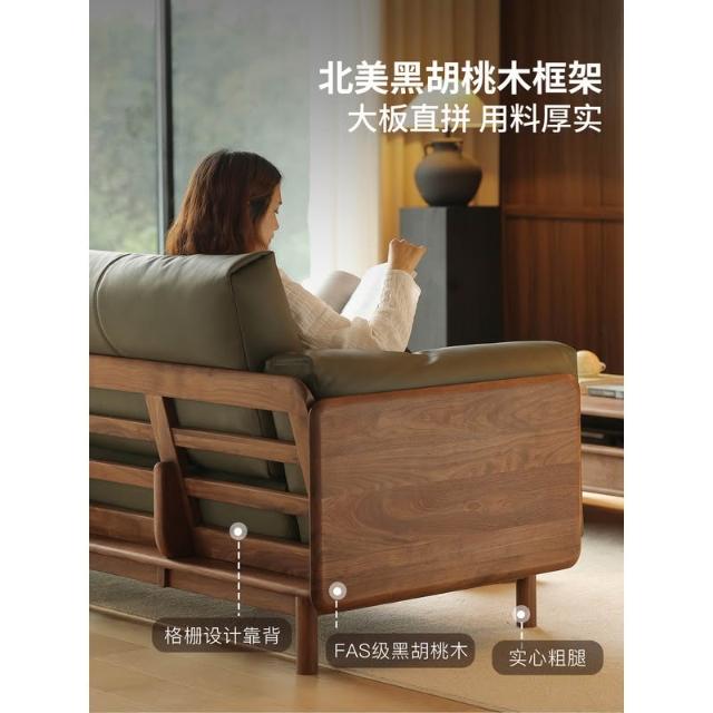 北美黑胡桃木實木沙發原木直排復古客廳小戶型家用真皮沙發四人位