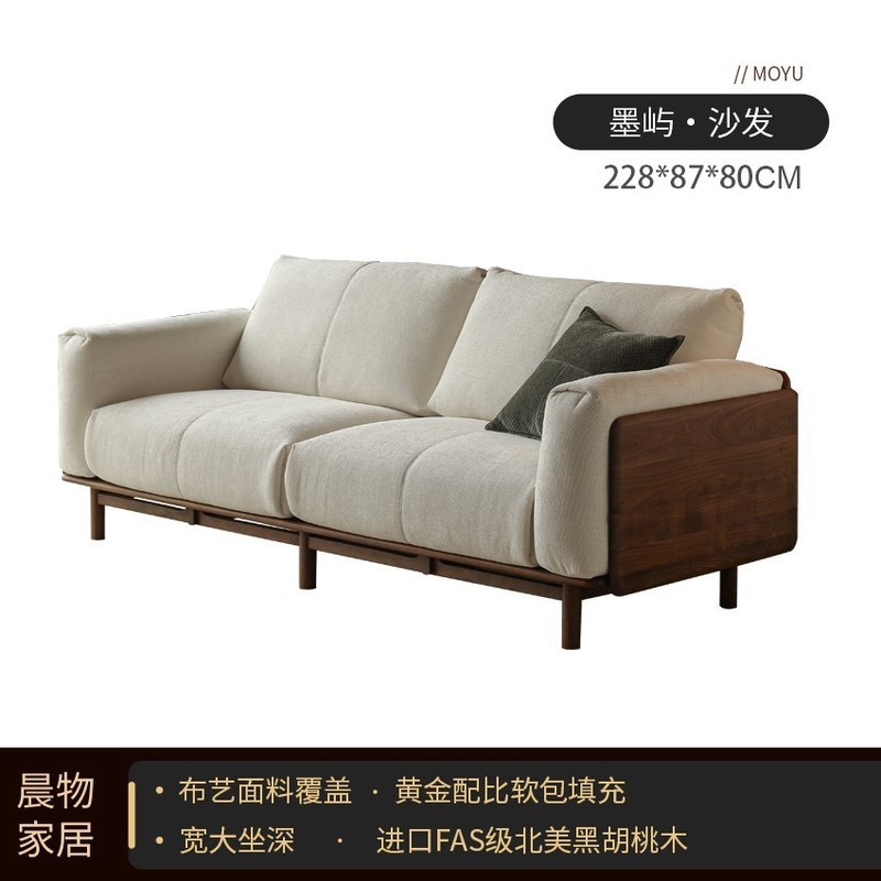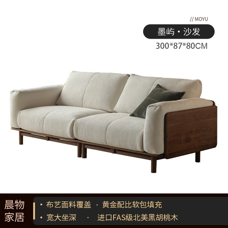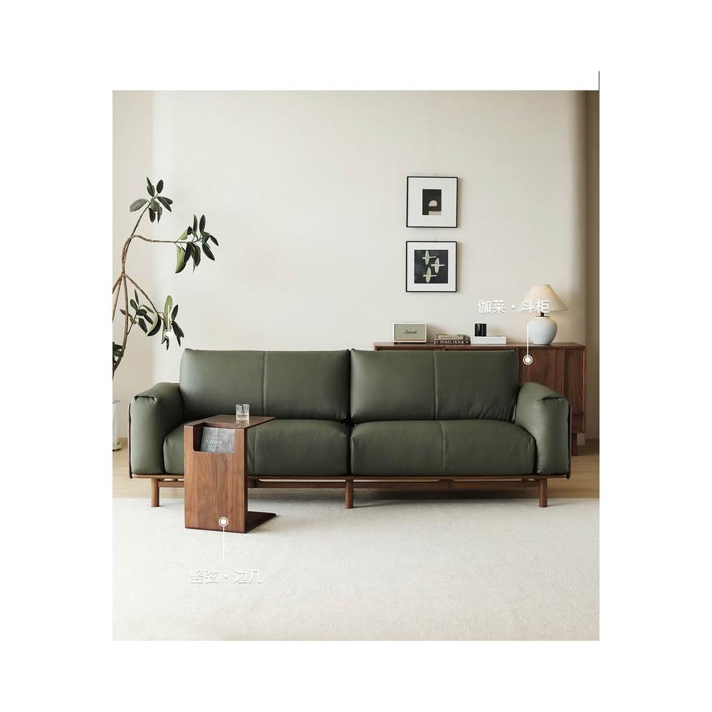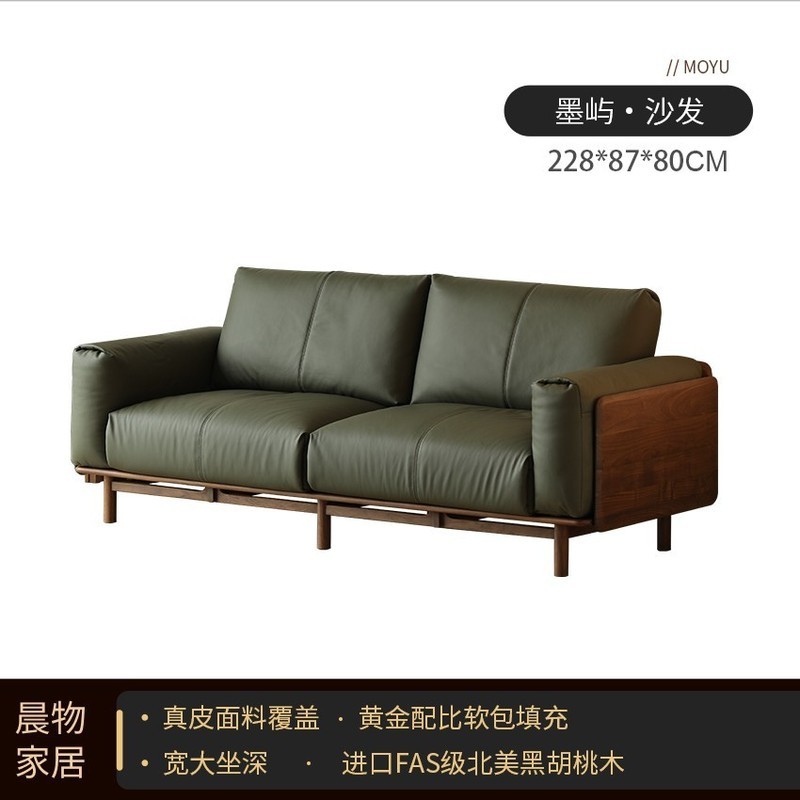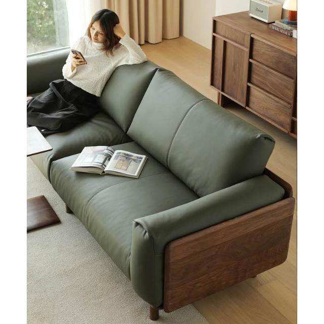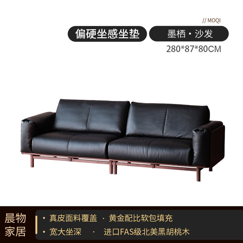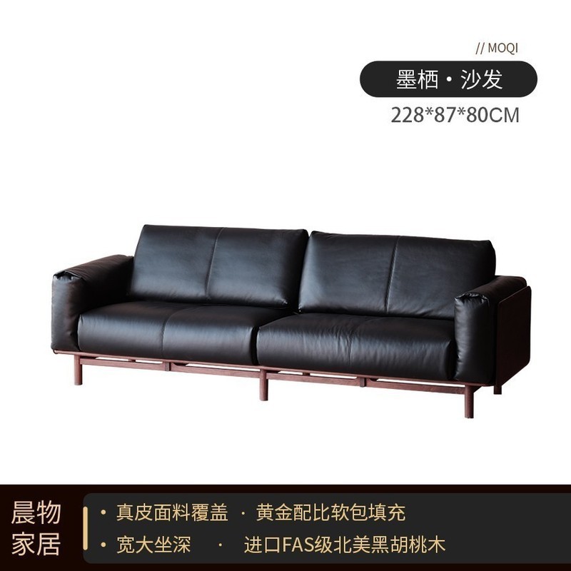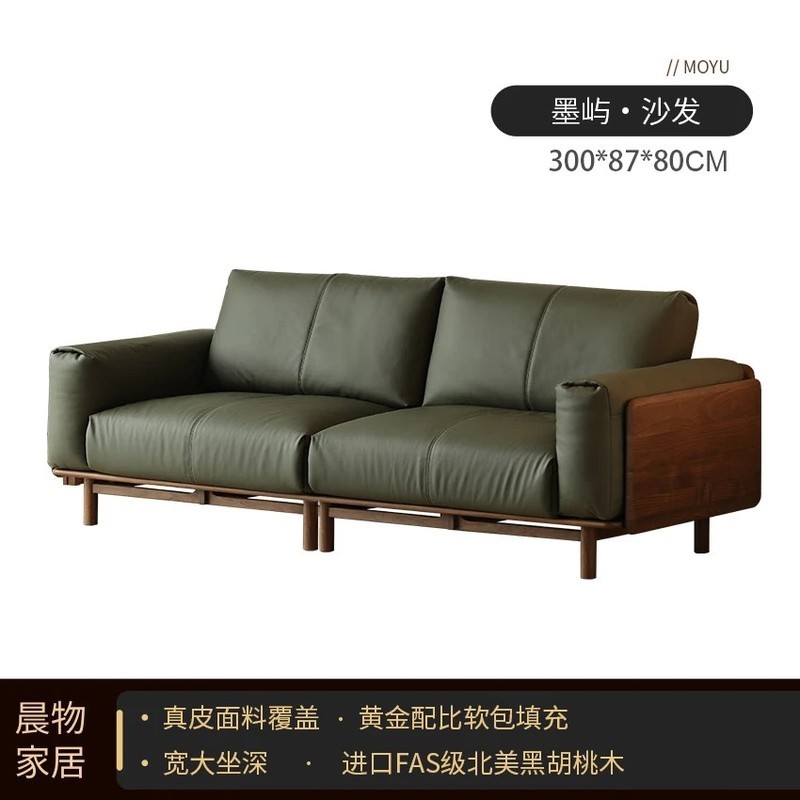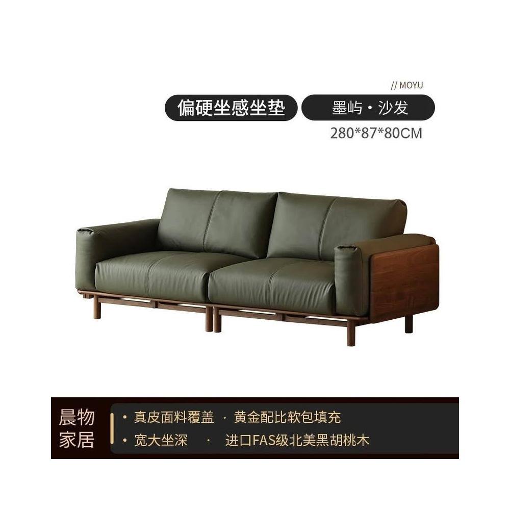 北美黑胡桃木實木沙發原木直排復古客廳小戶型家用真皮沙發四人位