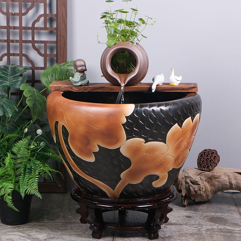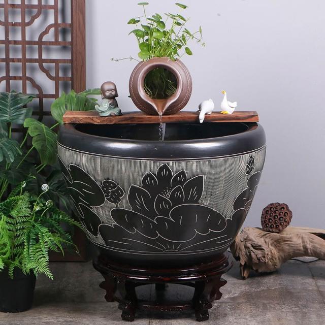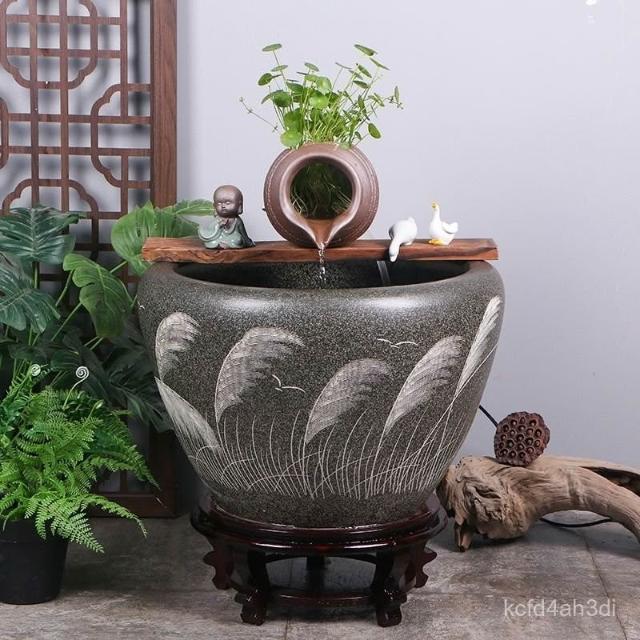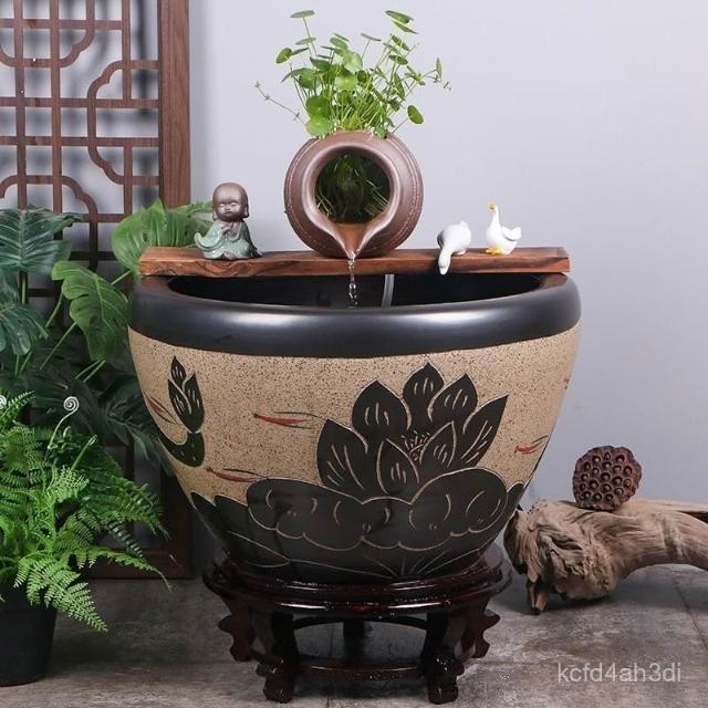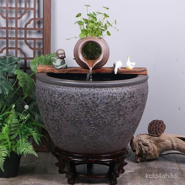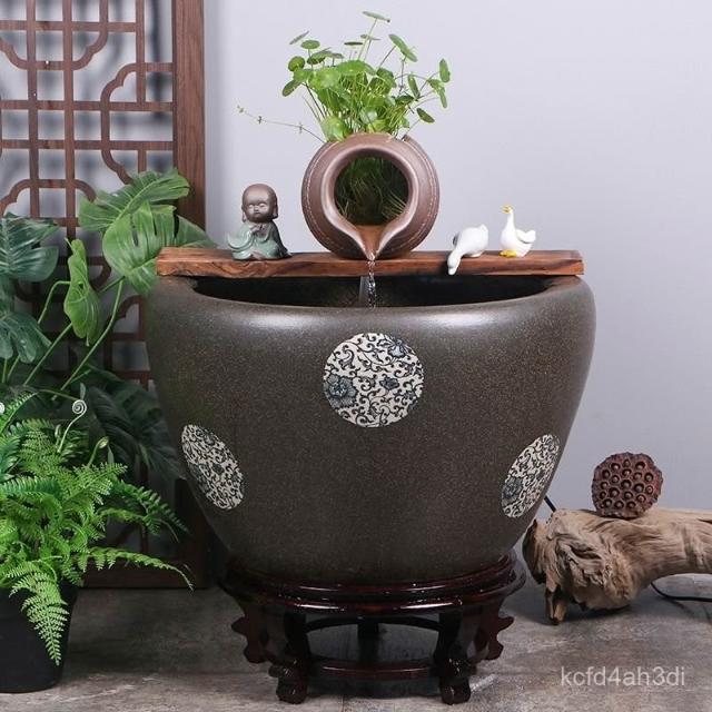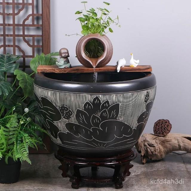陶瓷金魚缸陽臺辦公室客廳流水擺件水缸過濾庭院大缸養魚盆