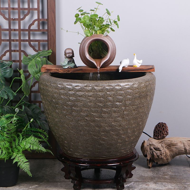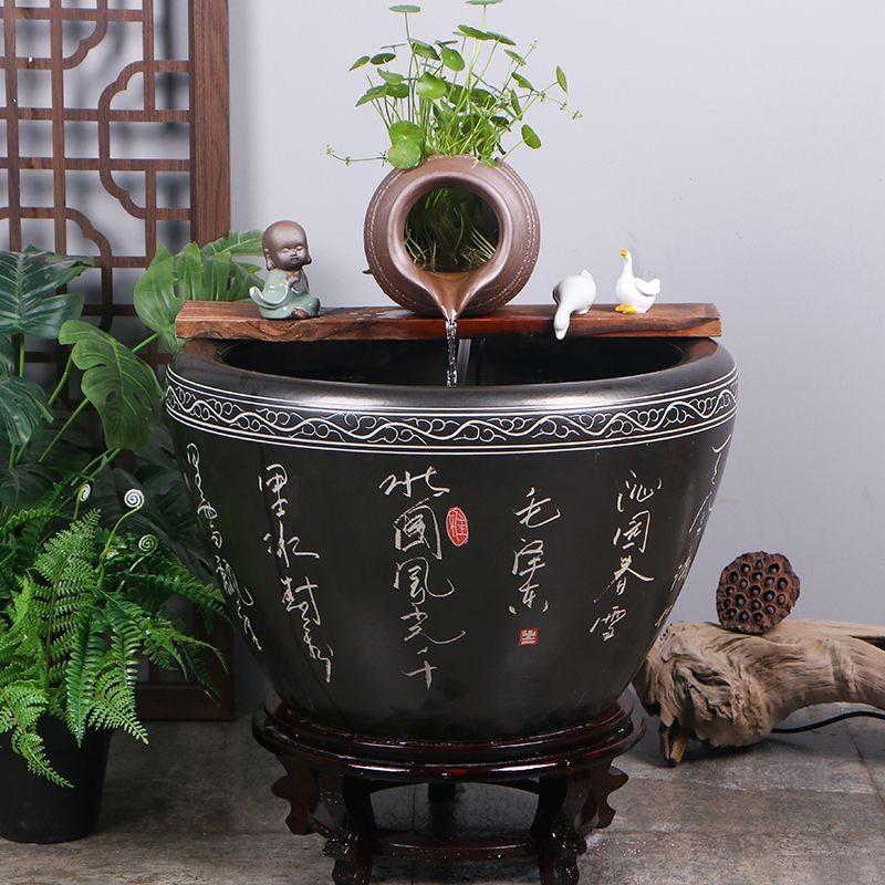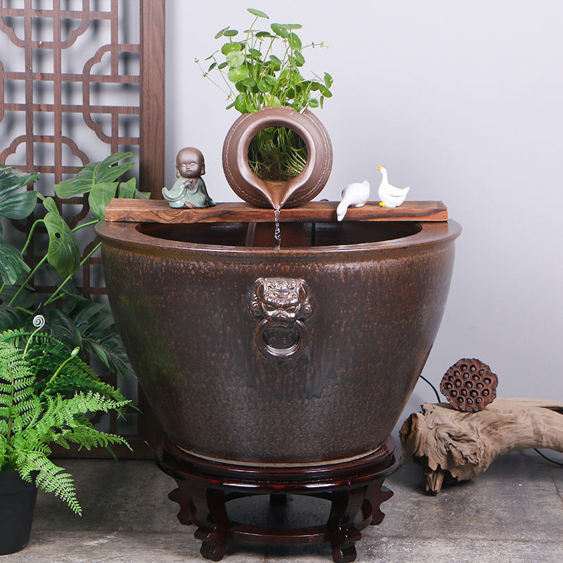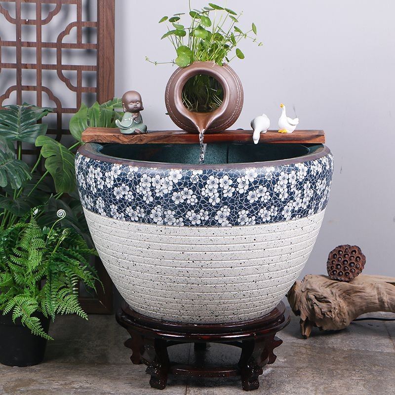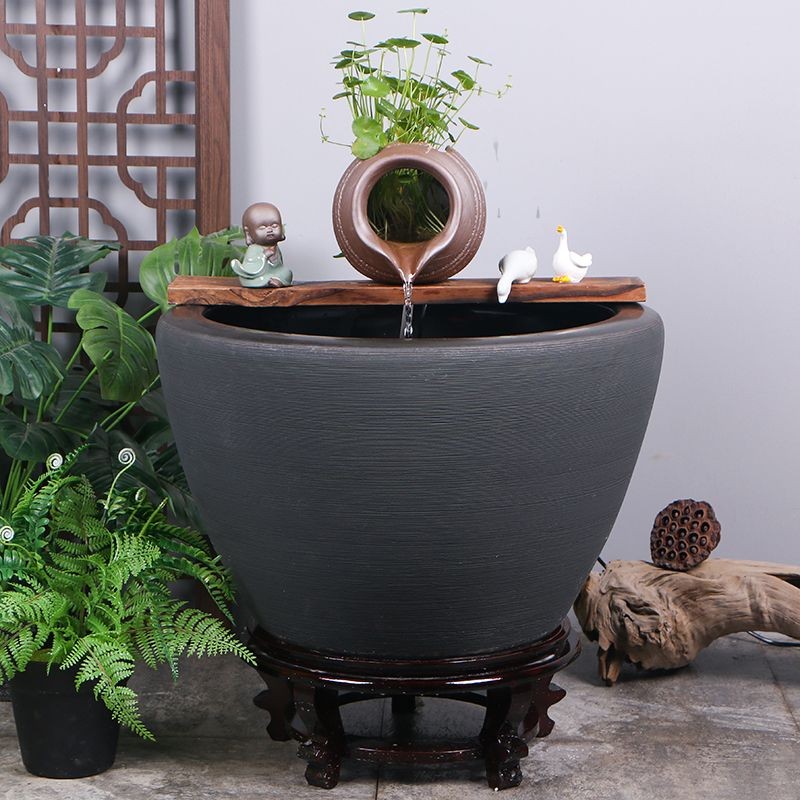 陶瓷金魚缸陽臺辦公室客廳流水擺件水缸過濾庭院大缸養魚盆
