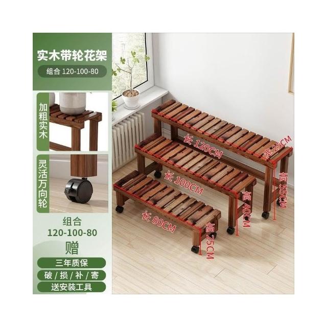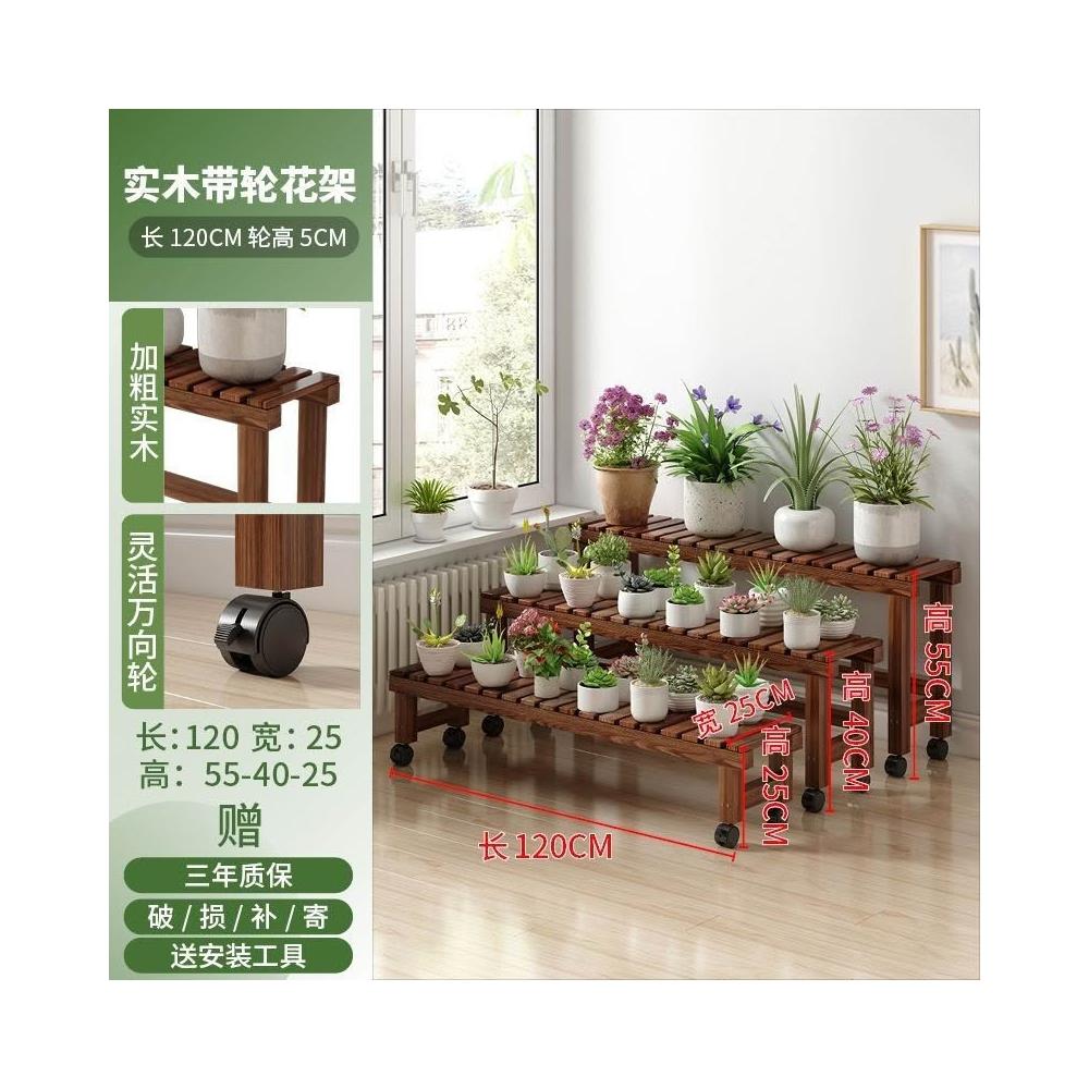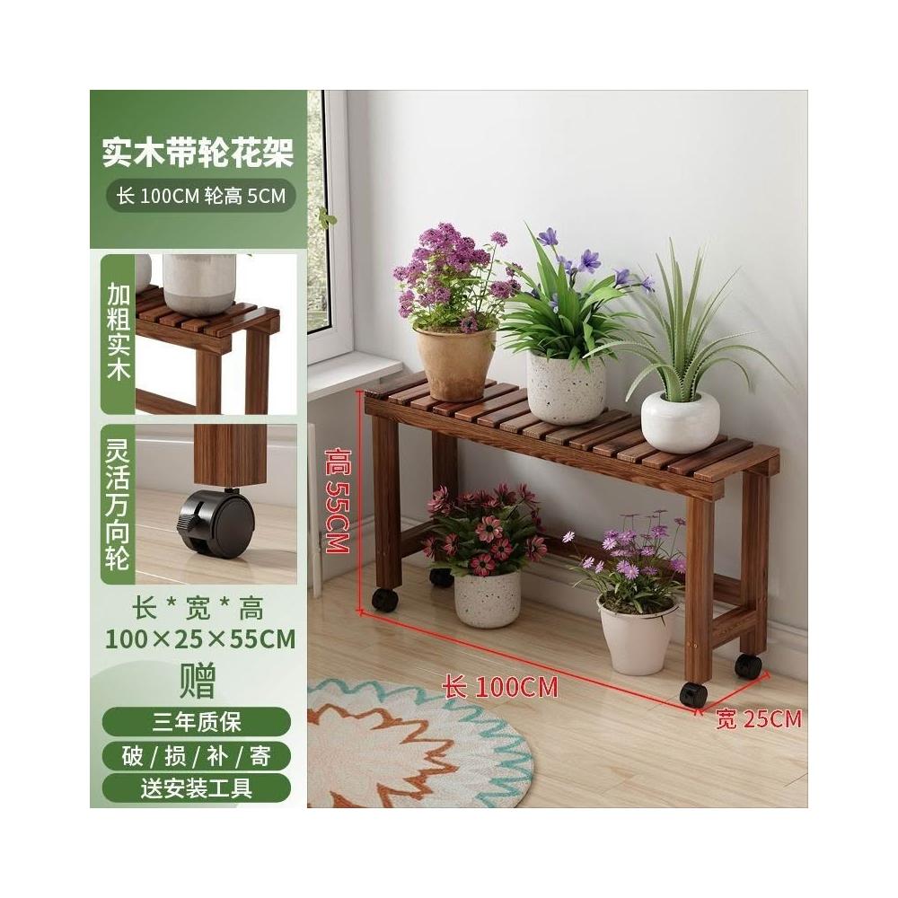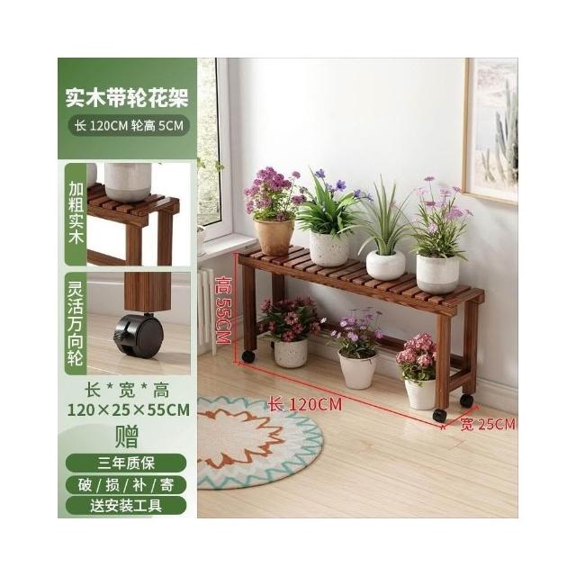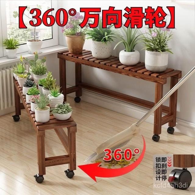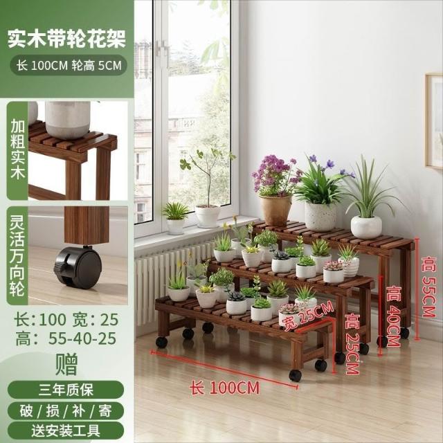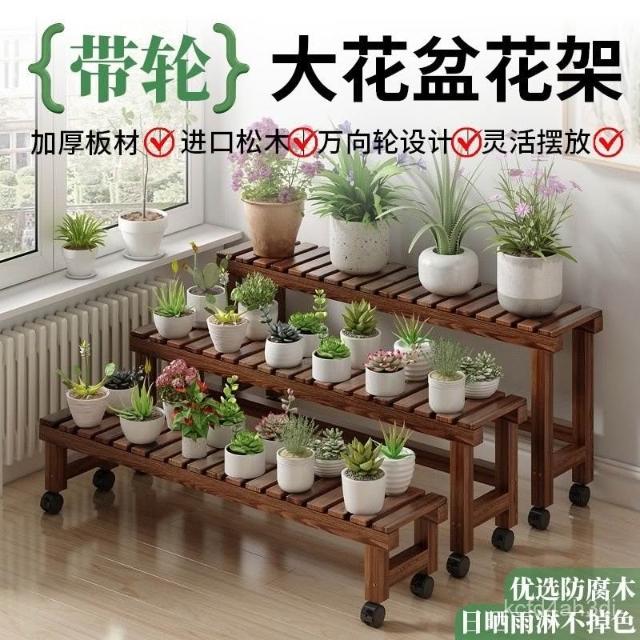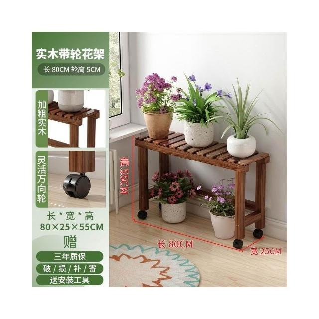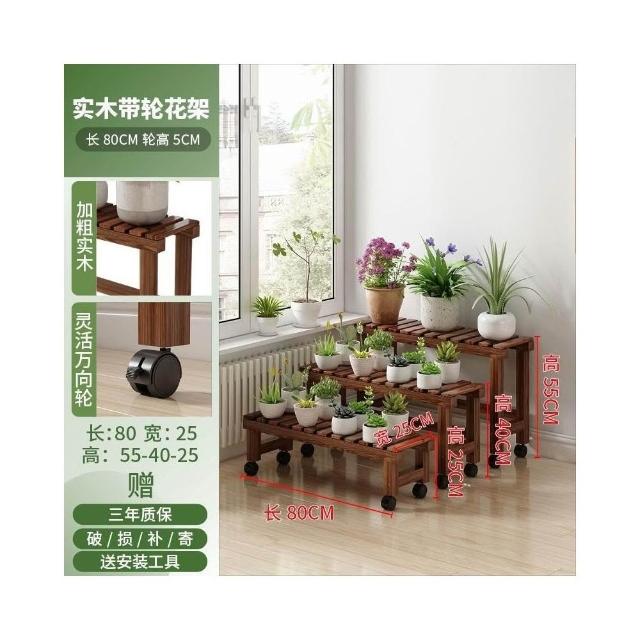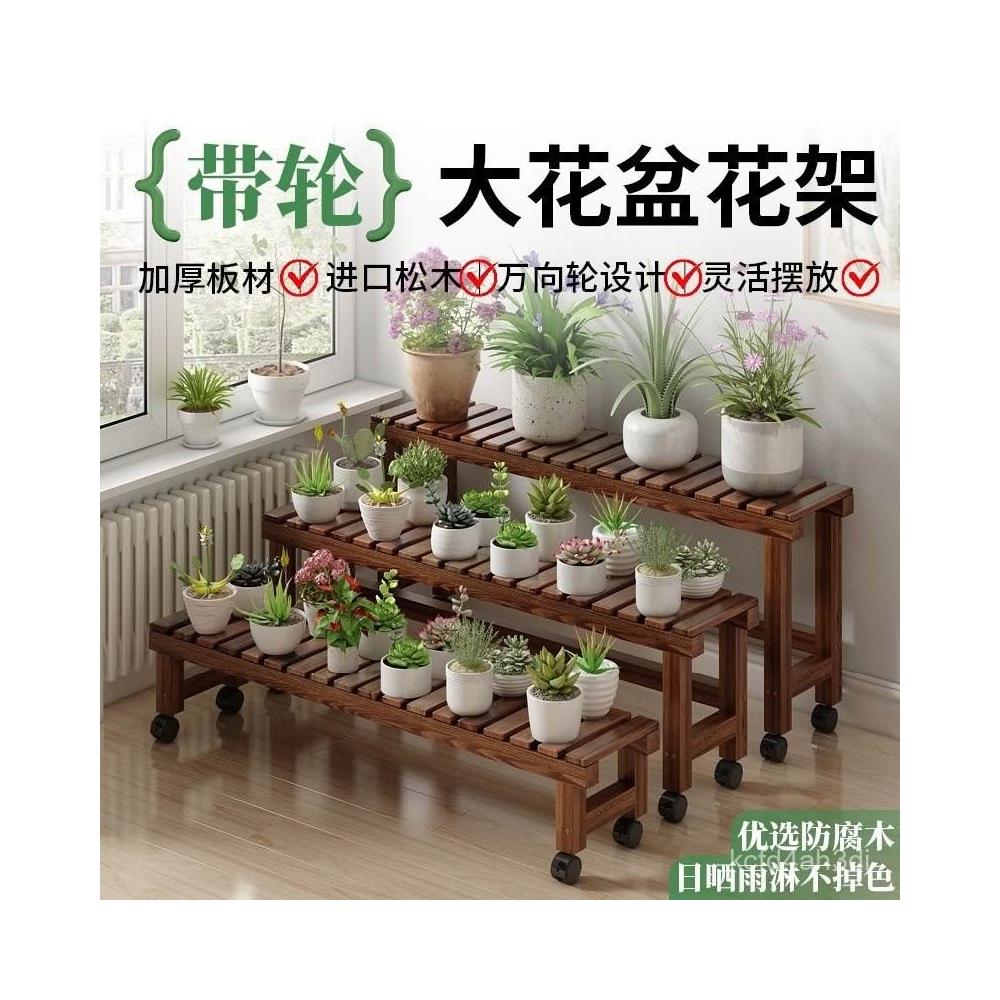 實木移動花架 帶滑輪花架 陽臺置物架 多肉花架 防腐木花架 客廳收納架 室內花盆架 多功能植物架 盆栽置物架