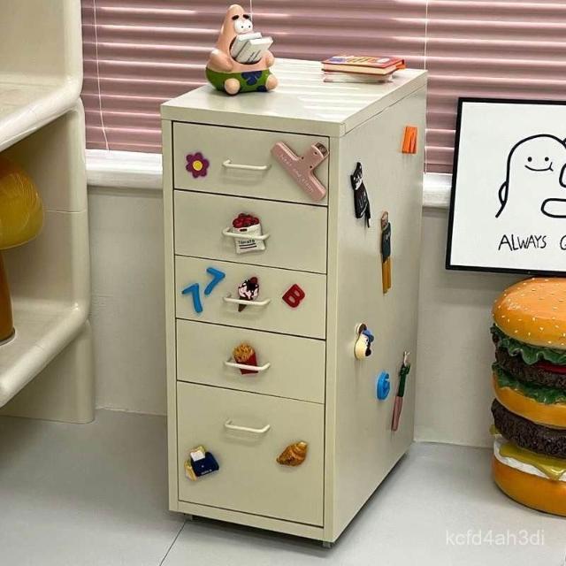 免運夾縫櫃 收納櫃 置物櫃 儲物櫃宜家抽屜式床頭櫃儲物櫃鐵藝梳妝臺整理櫃小型臥室移動雜物櫃帶鎖 金屬夾縫分類收納櫃