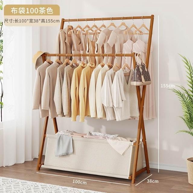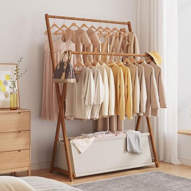 摺疊 雙層落地衣架 落地立式臥室掛衣架 家用門後衣帽架 晾衣收納神器