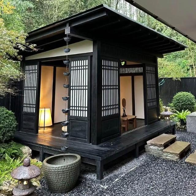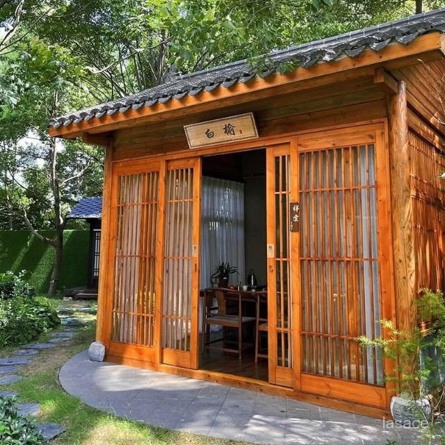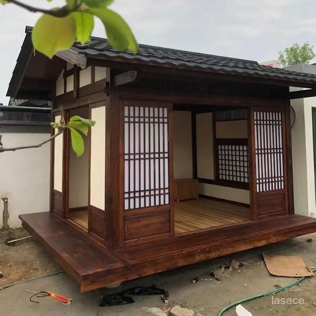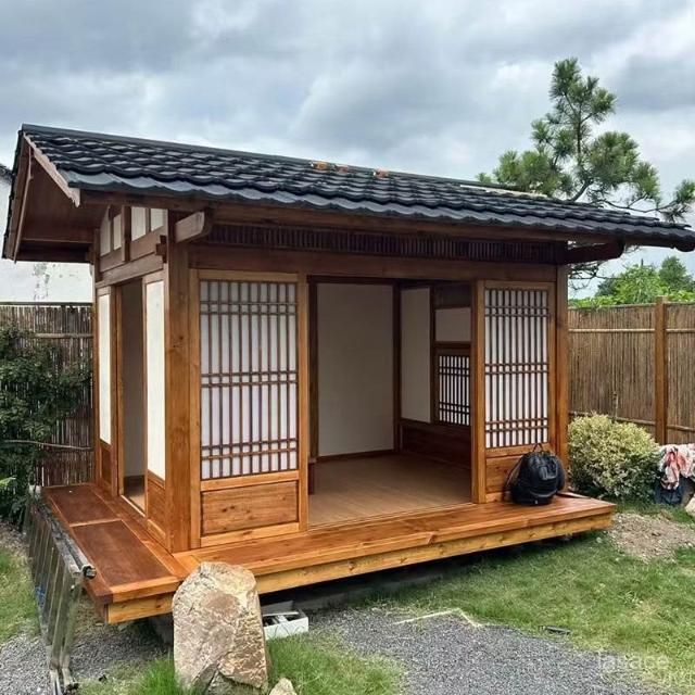 網紅日式小木屋戶外組裝庭院防腐木小房子碳化可住人農傢樂包廂茶室 室外簡易房 雜物房 儲物工具房 雜物間 花園雜物間