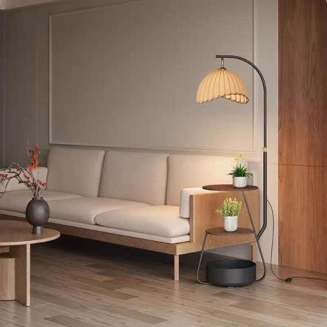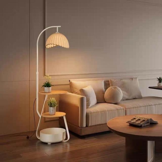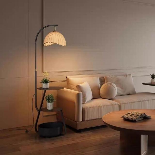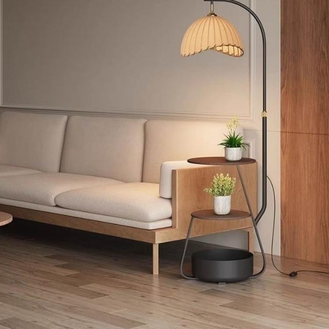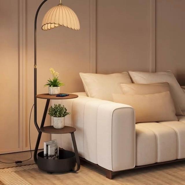 落地燈美式復古客廳沙發旁置物一體茶几燈臥室書房侘寂風床頭燈