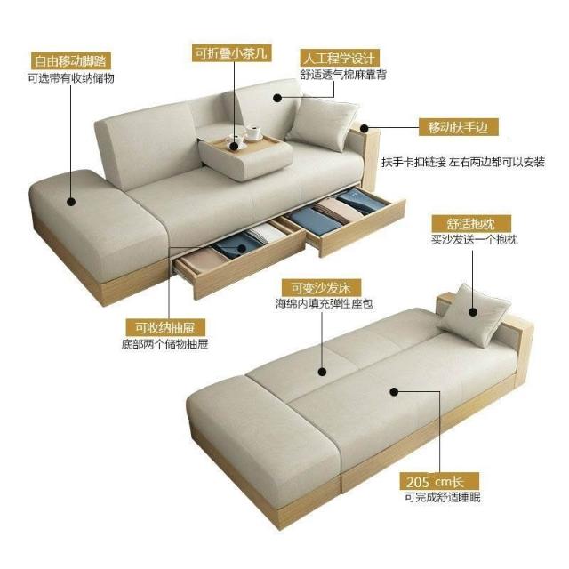 沙發床 乳膠沙發可變床 多功能收納日式北歐布藝 沙發 小戶型 省空間 整裝家具 三人沙發 二人沙發