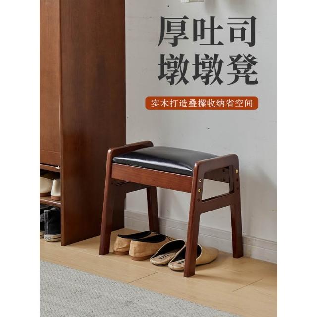 實木軟包化妝凳 宅配免運門口換鞋凳 小凳子 家用矮凳 小板凳 客廳椅子軟坐墊凳子 梳妝凳 墊腳凳 厚吐司墩墩凳
