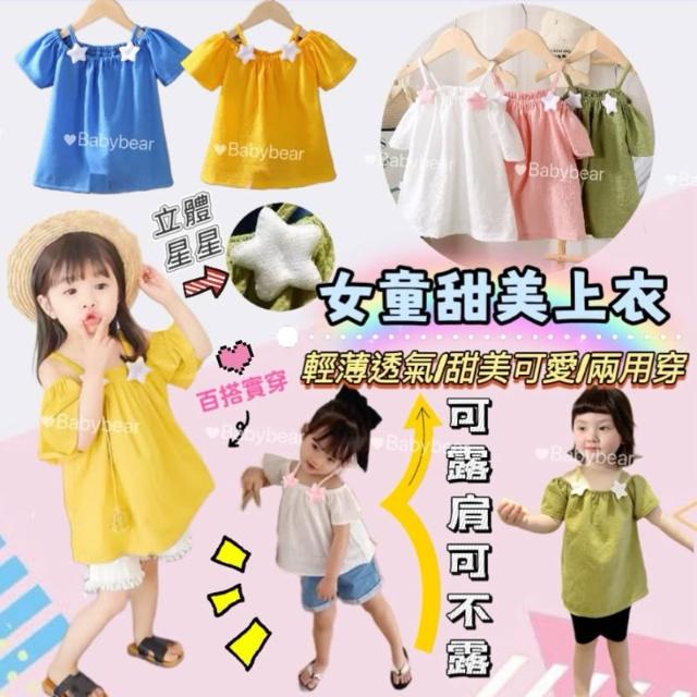 童裝 兒童短袖 女童露肩上衣 女寶吊帶衣服 女童短袖T恤