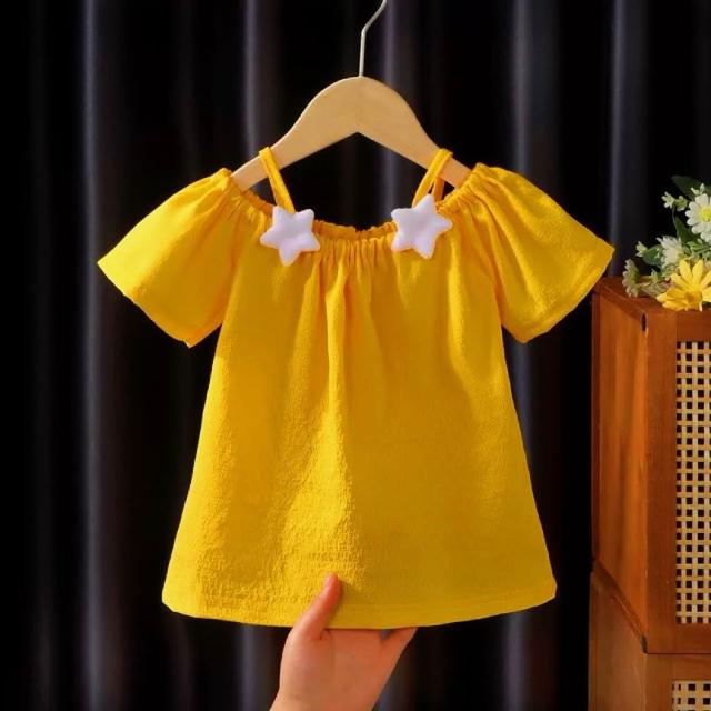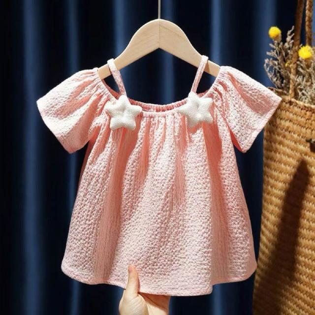 童裝 兒童短袖 女童露肩上衣 女寶吊帶衣服 女童短袖T恤