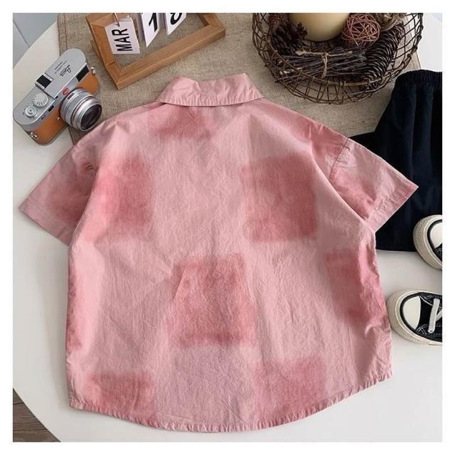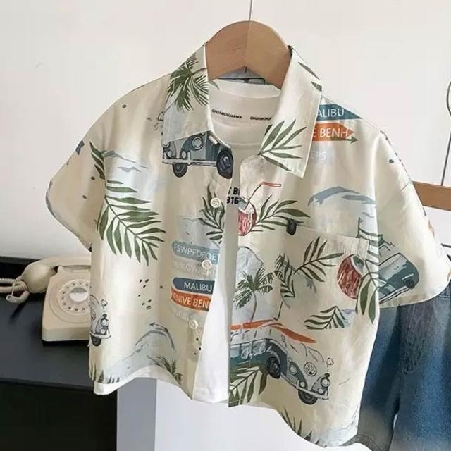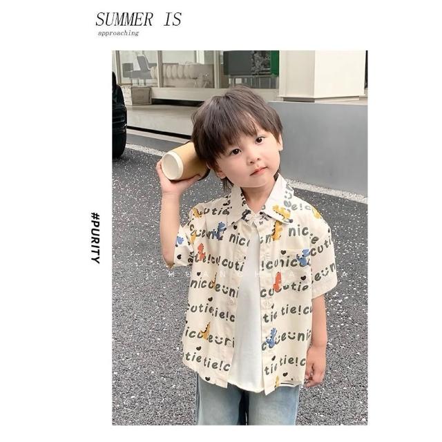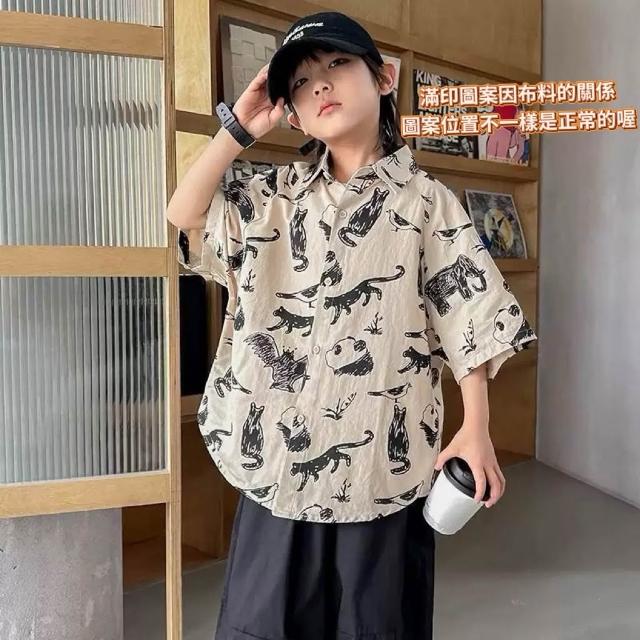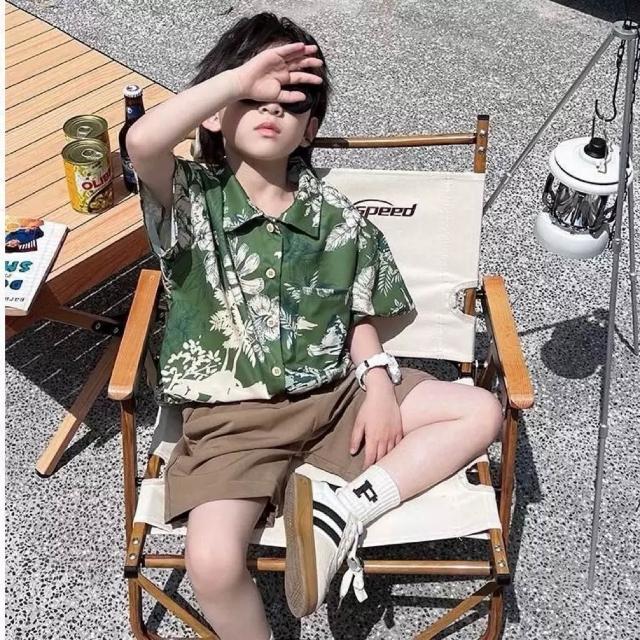 童裝 兒童襯衫 兒童短袖襯衫 男童滿印襯衫 印花襯衫 男童翻領上衣 渡假風襯衫