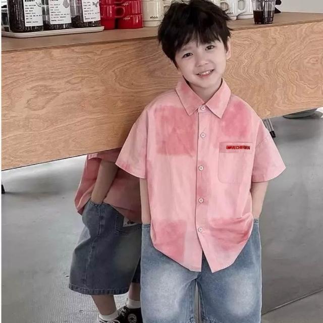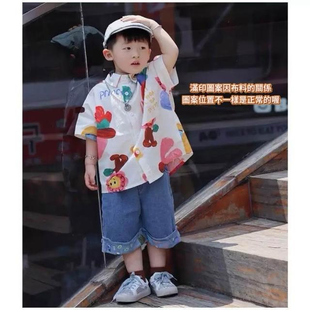 童裝 兒童襯衫 兒童短袖襯衫 男童滿印襯衫 印花襯衫 男童翻領上衣 渡假風襯衫