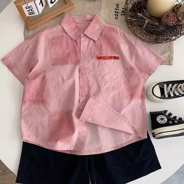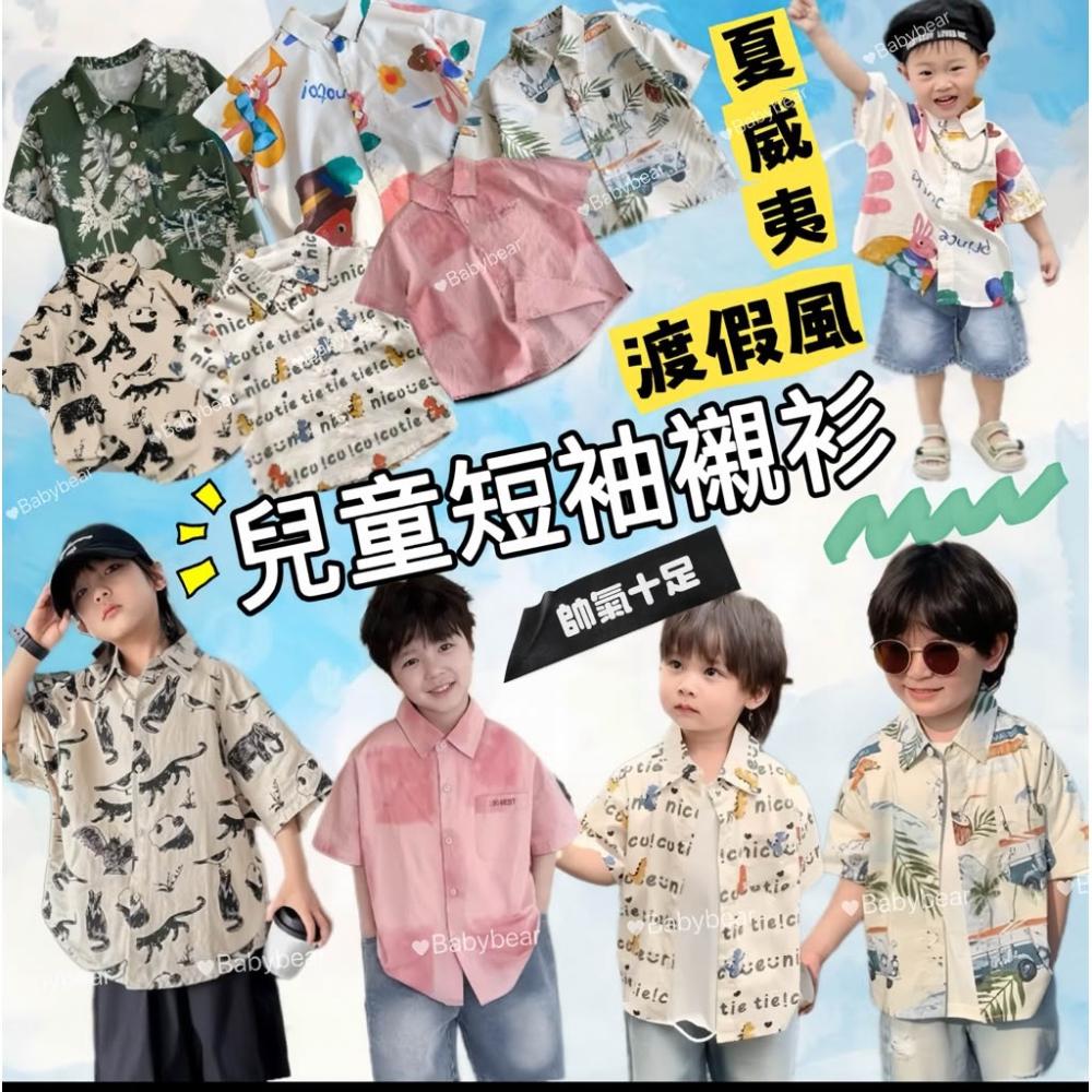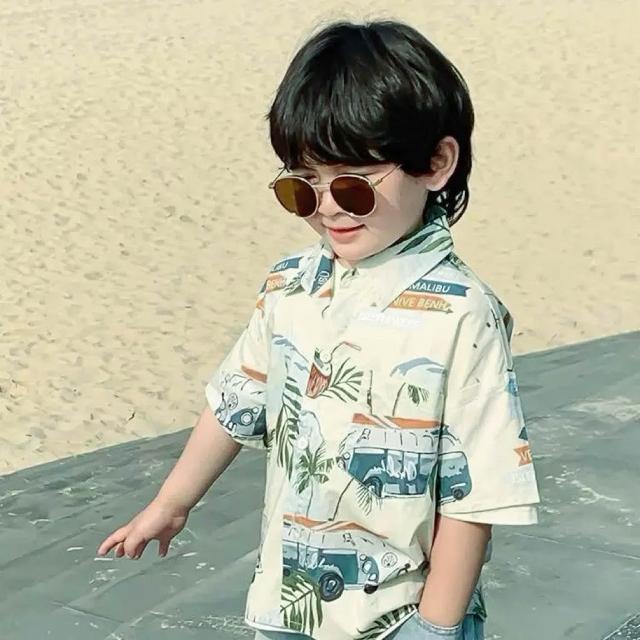 童裝 兒童襯衫 兒童短袖襯衫 男童滿印襯衫 印花襯衫 男童翻領上衣 渡假風襯衫