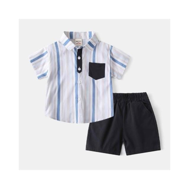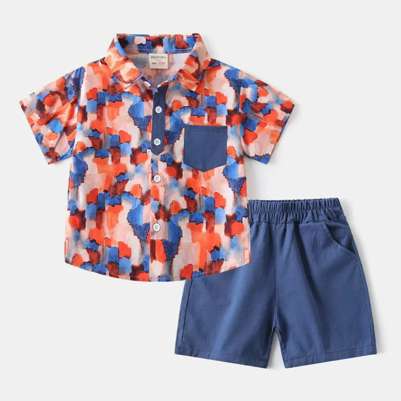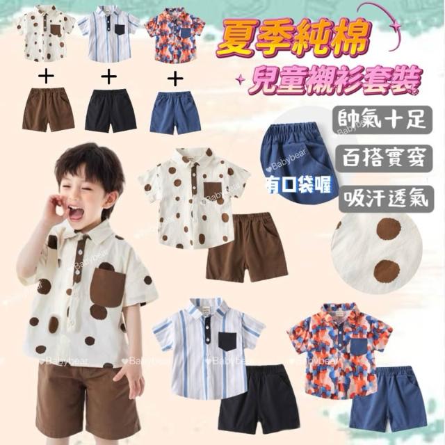 童裝 兒童純棉套裝 日系印花套裝 男童翻領上衣 渡假風襯衫