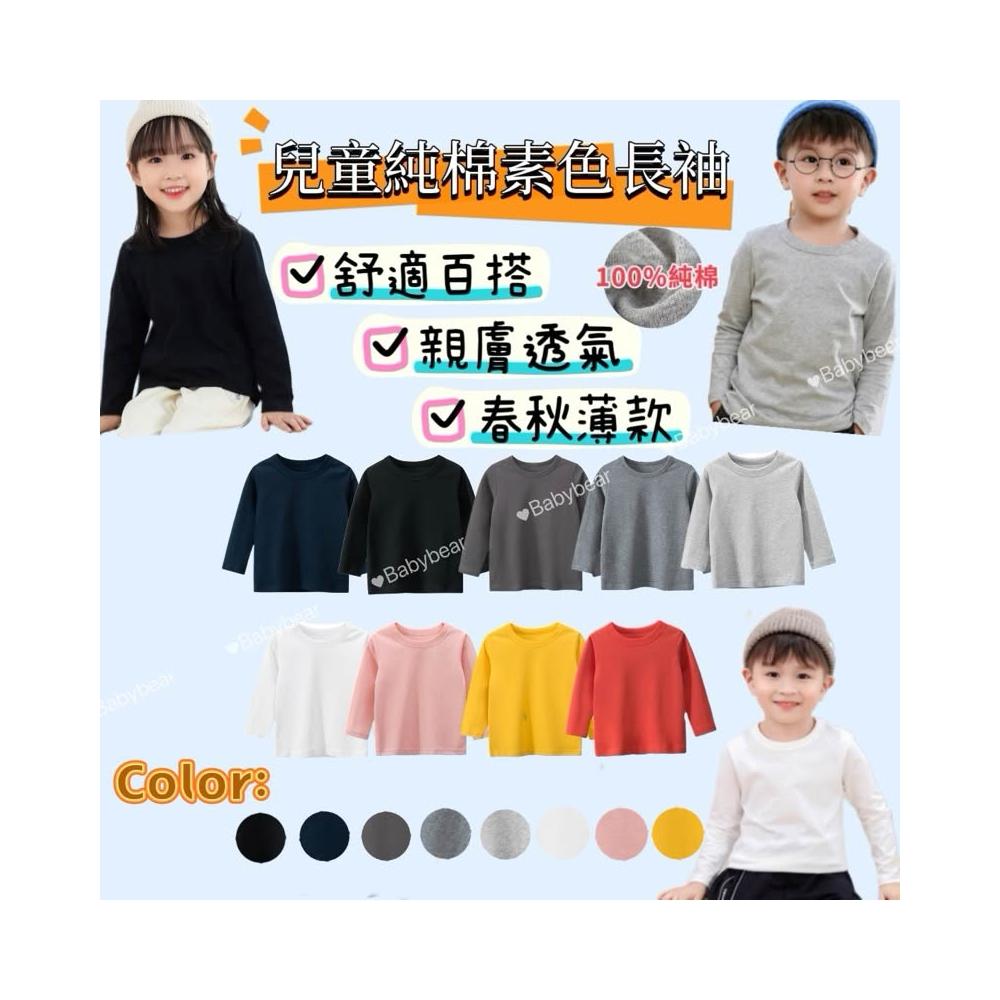 童裝 純棉素色T 兒童圓領長袖上衣 兒童內搭衣 兒童純棉打底衫