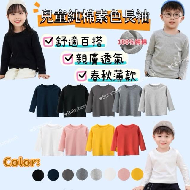 童裝 純棉素色T 兒童圓領長袖上衣 兒童內搭衣 兒童純棉打底衫