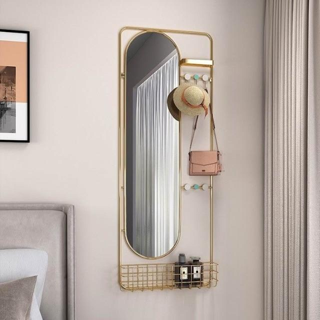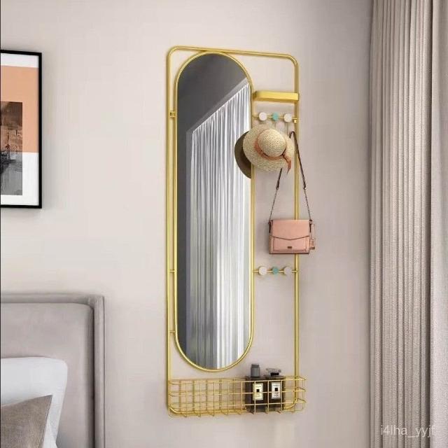 免運 輕奢墻上穿衣鏡衣帽架家用賓館試衣鏡子掛式壁掛一體掛墻臥室簡約