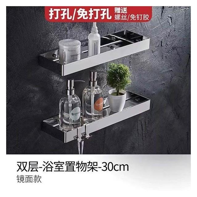 免運 浴室免打孔304不銹鋼置物架淋浴房衛生間廚房洗漱臺鏡前架收納架