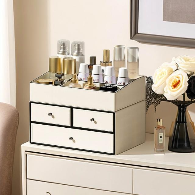 免運 化妝收納盒美妝儲物 新款時尚化妆品收纳盒2024新款桌面梳妆台置物架护肤品杂物抽屉防尘高级感