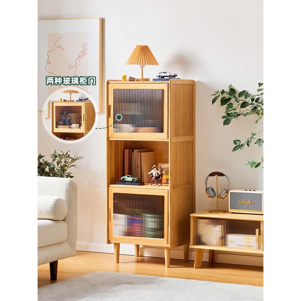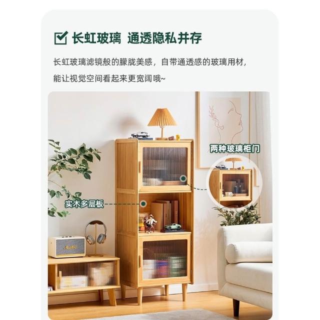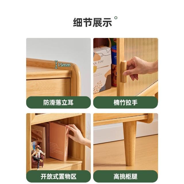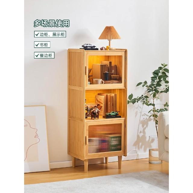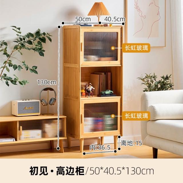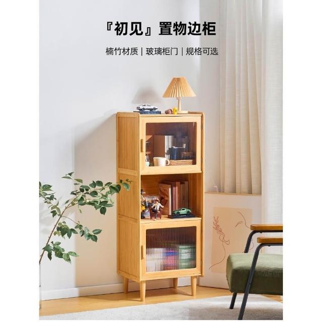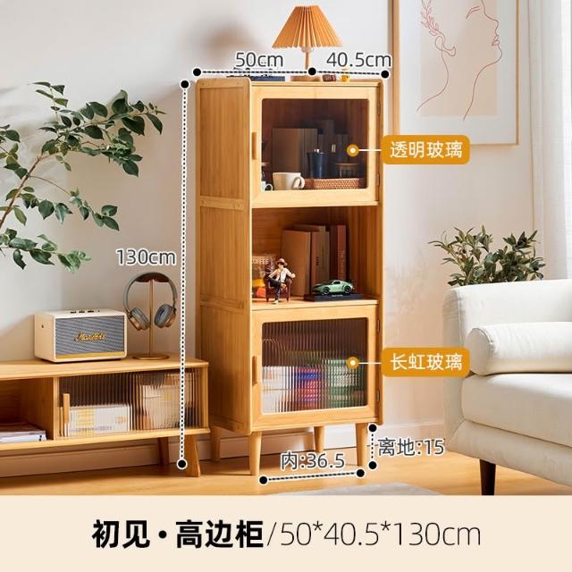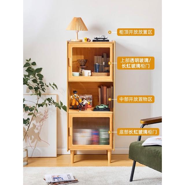 免運 日式實木書櫃現代簡約長虹玻璃收納儲物電視邊櫃客廳落地置物柜子