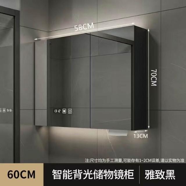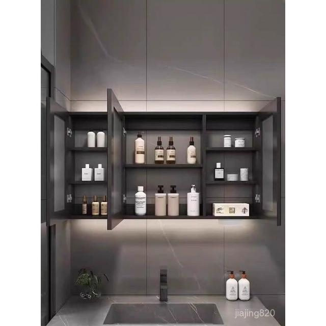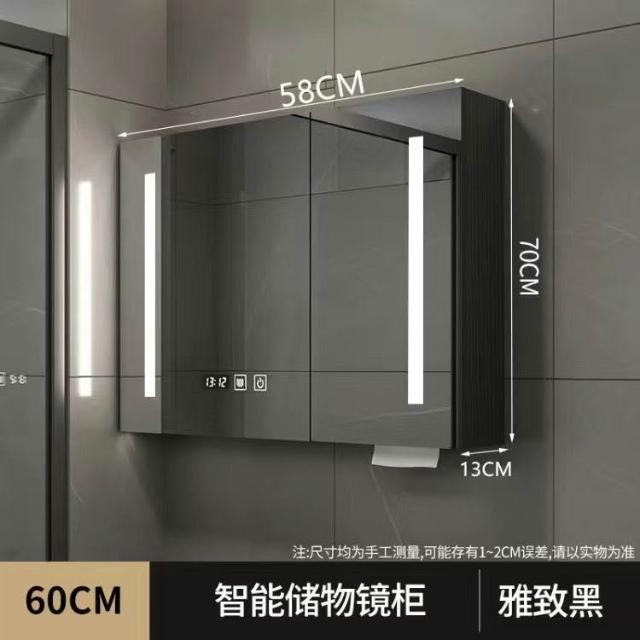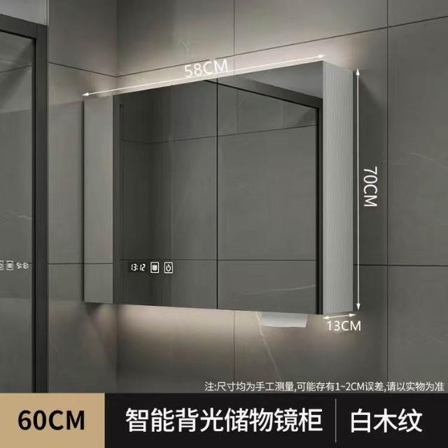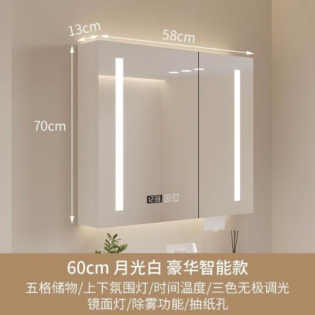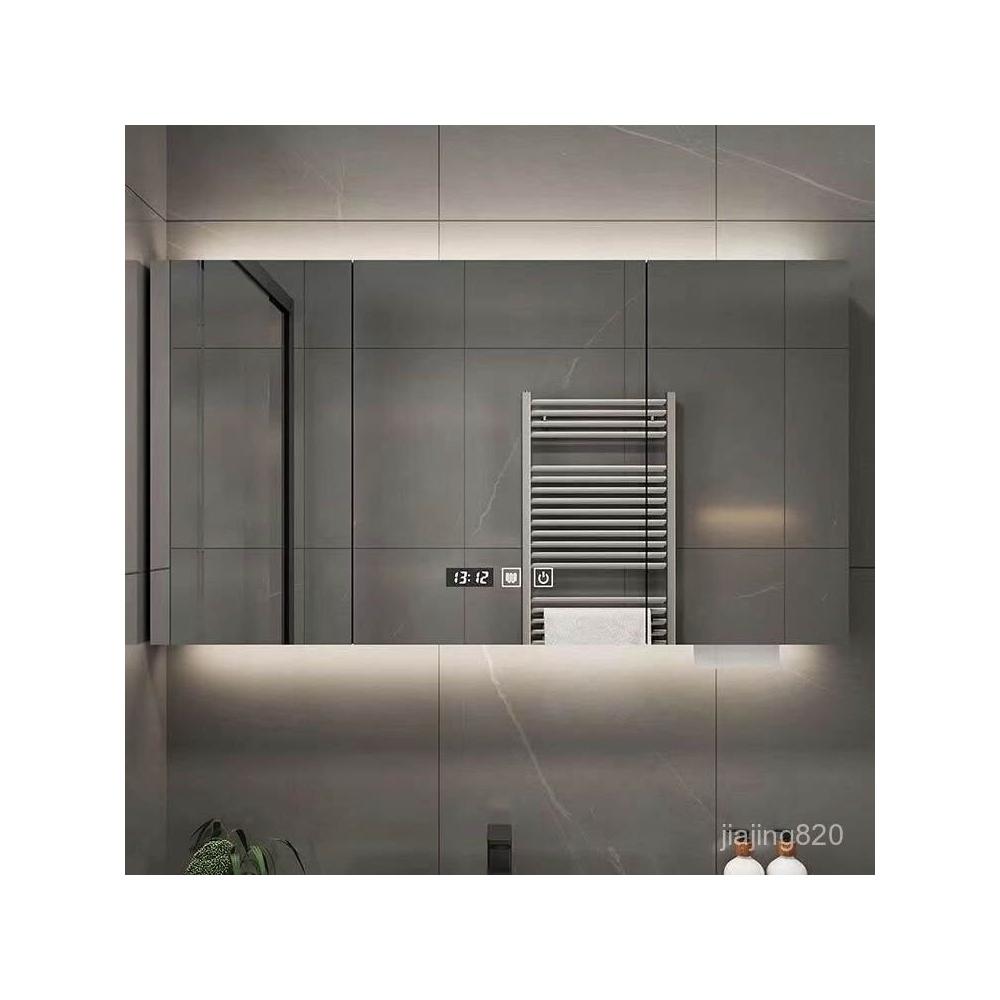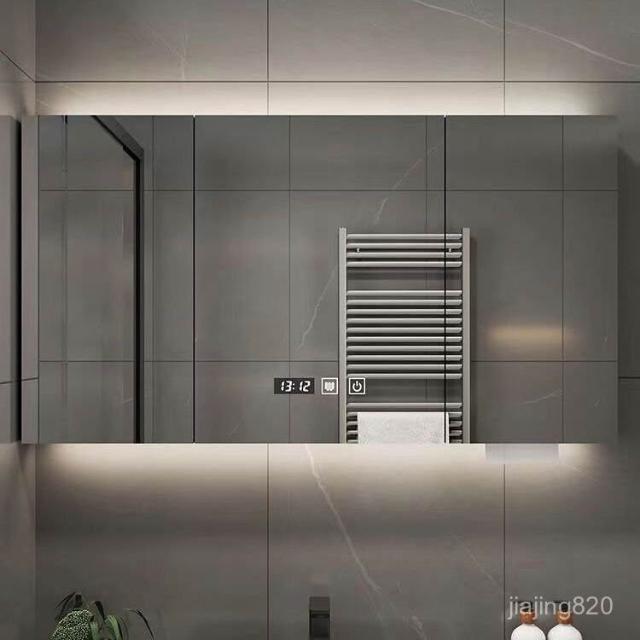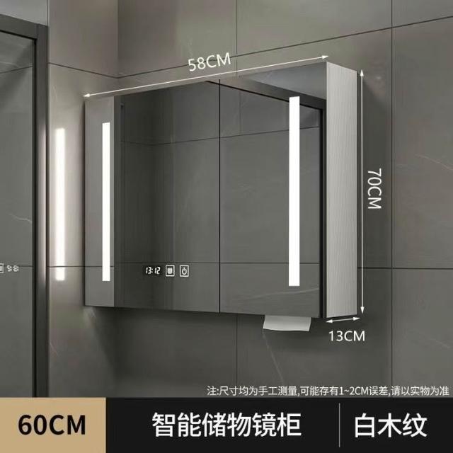 破損補寄/免運智能實木浴室鏡櫃衛生間鏡櫃收納梳妝鏡洗手厠所鏡帶置物架除霧鏡浴室鏡櫃 浴室鏡 收納櫃 洗浴鏡 掛牆式鏡麵櫃