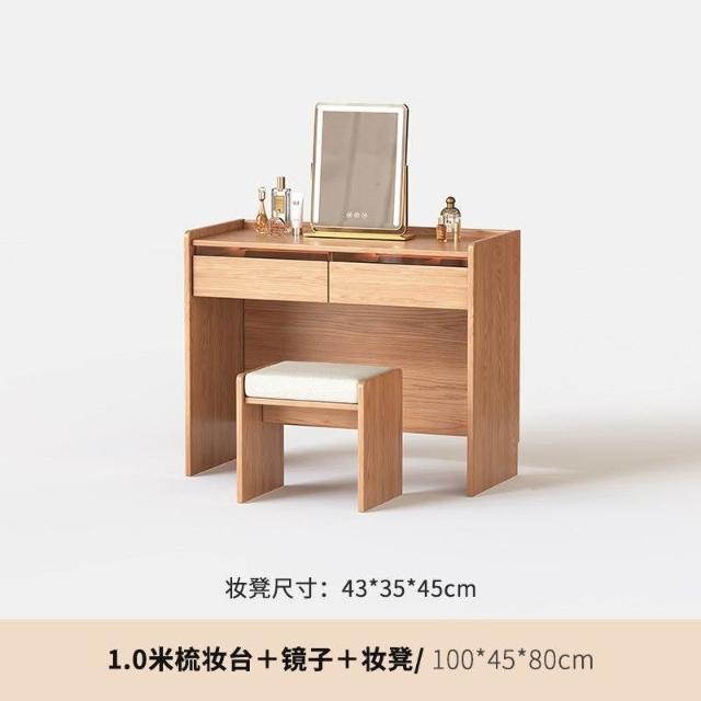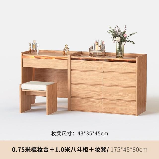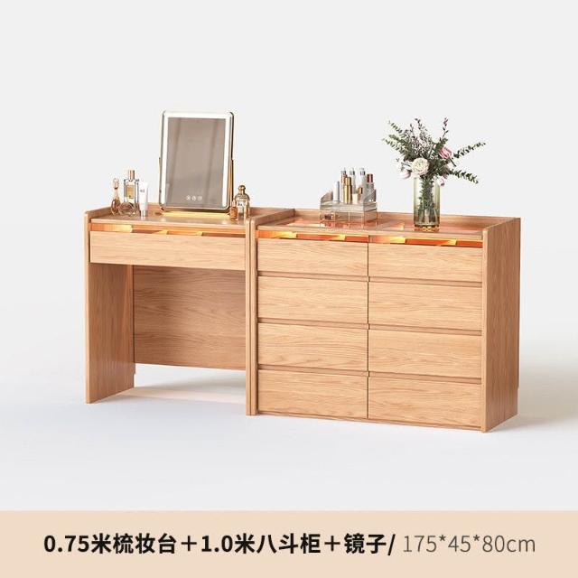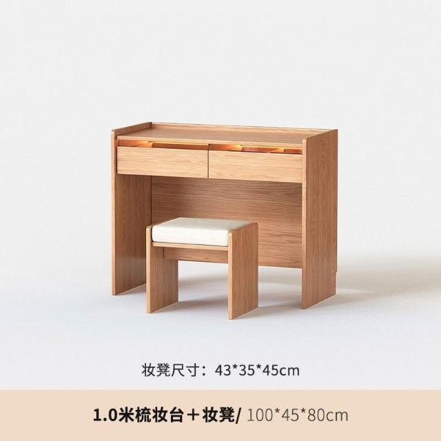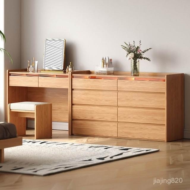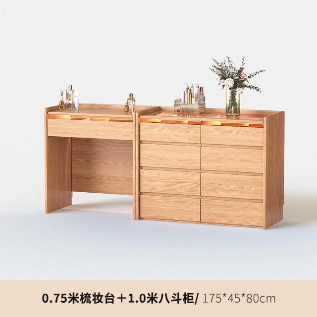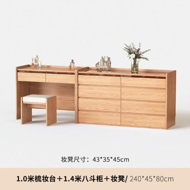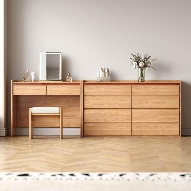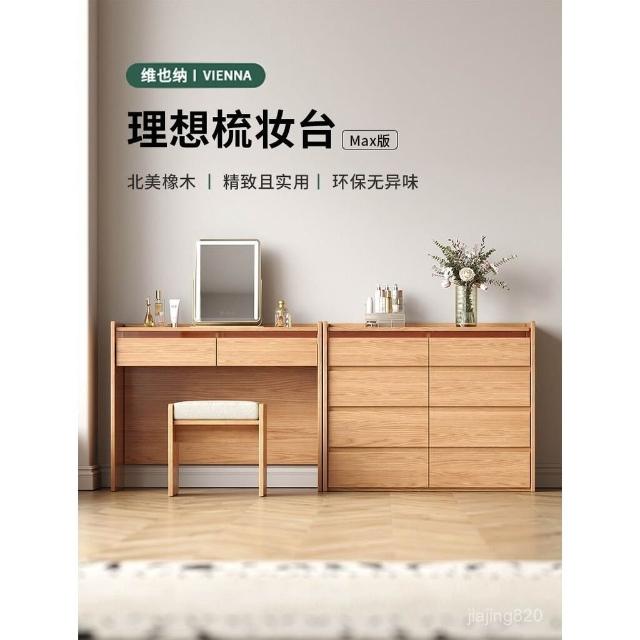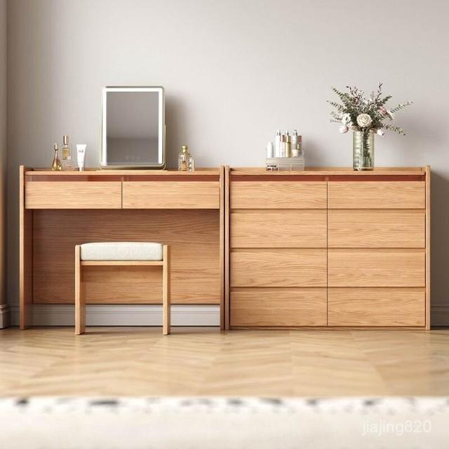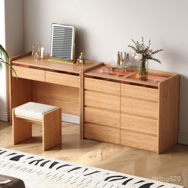 免運+上新特殺 木立森實木橡木梳妝臺鬥櫃組閤書桌一體小戶型化妝臺多功能化妝桌化妝桌 梳妝臺 北歐臥室化妝臺 公主化妝桌