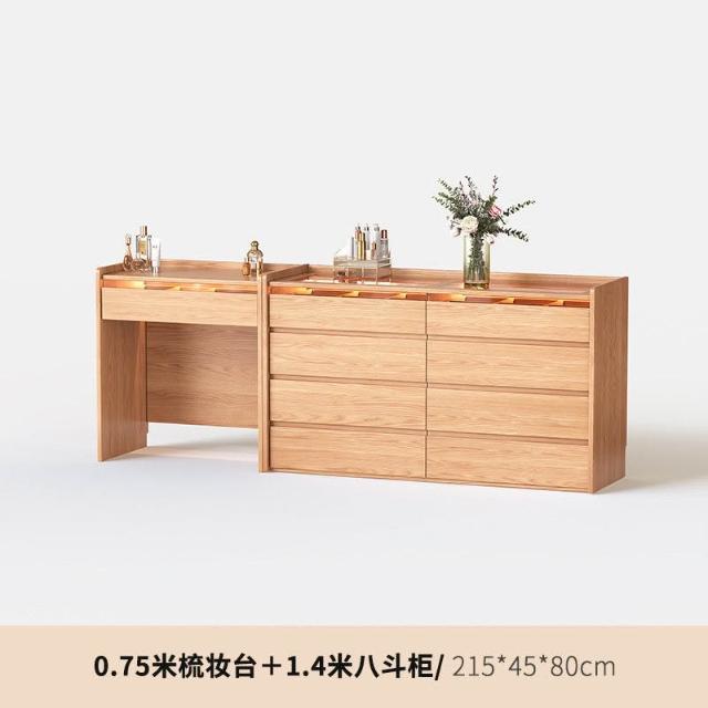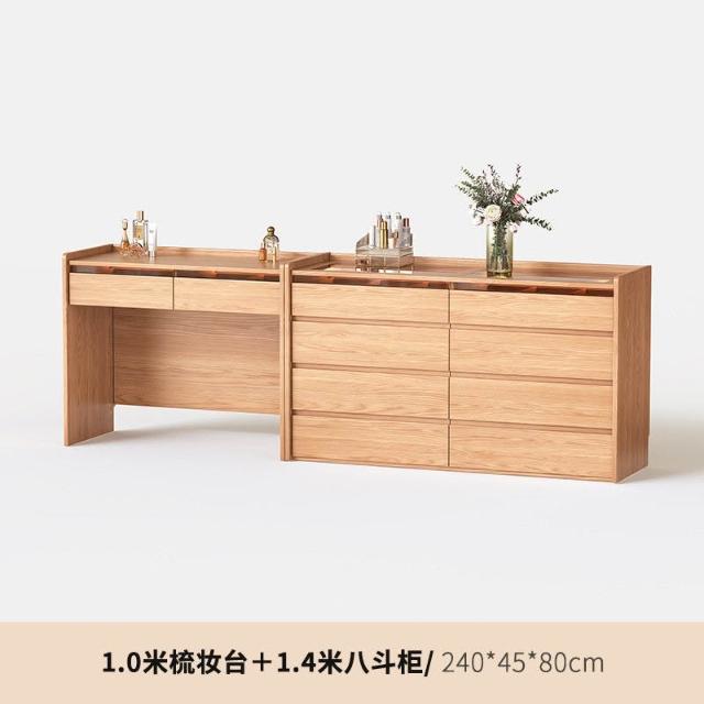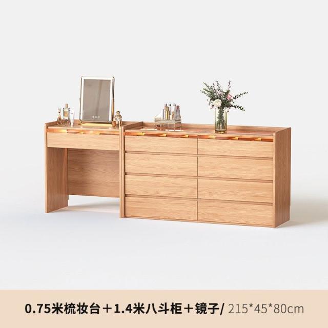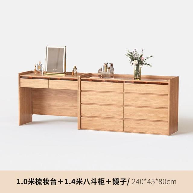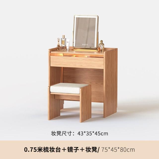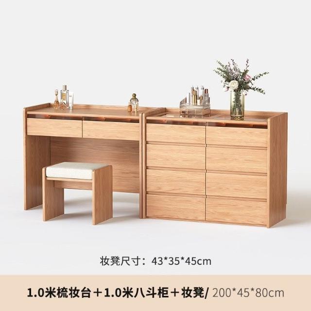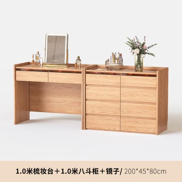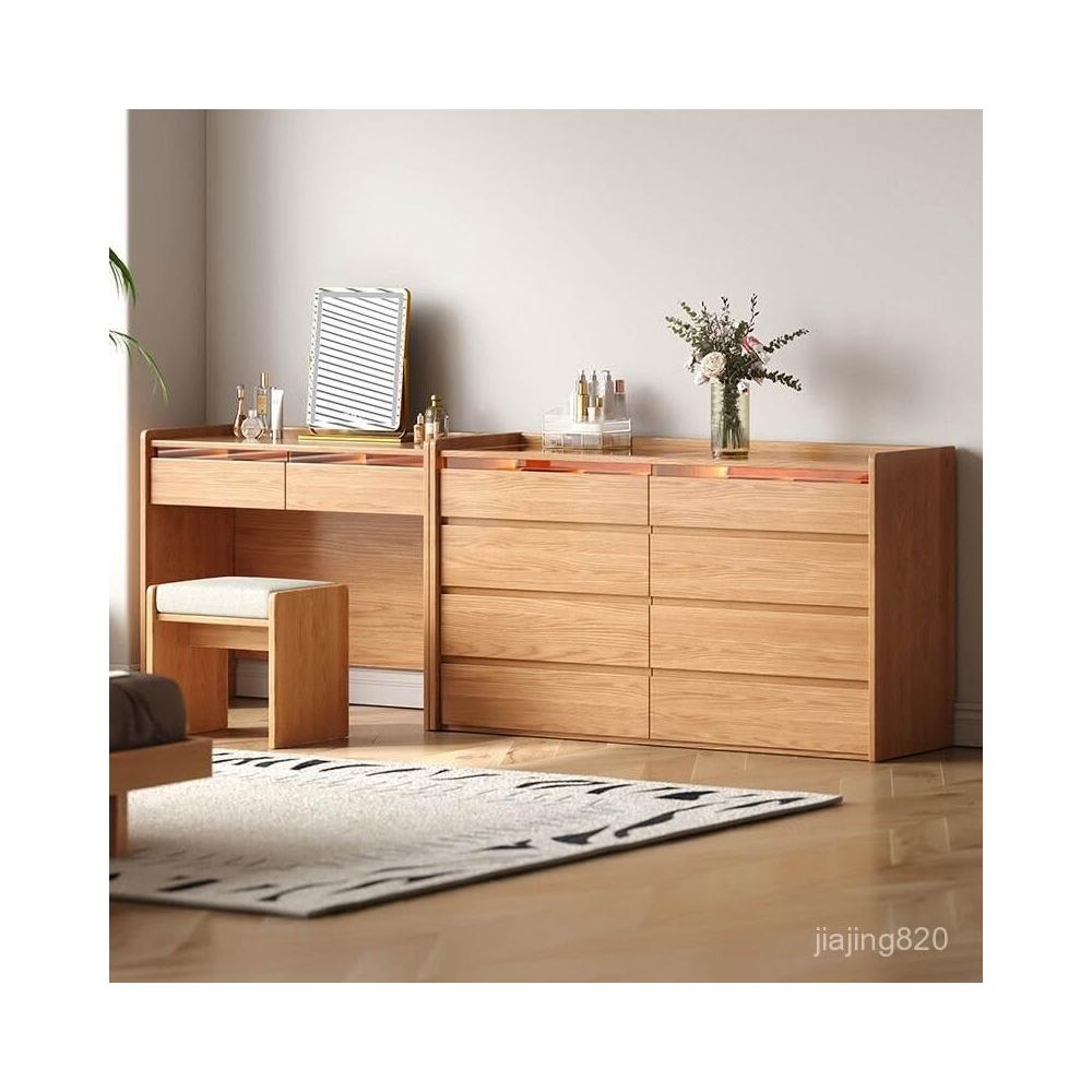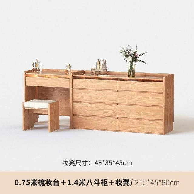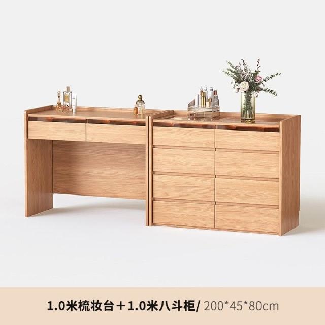 免運+上新特殺 木立森實木橡木梳妝臺鬥櫃組閤書桌一體小戶型化妝臺多功能化妝桌化妝桌 梳妝臺 北歐臥室化妝臺 公主化妝桌