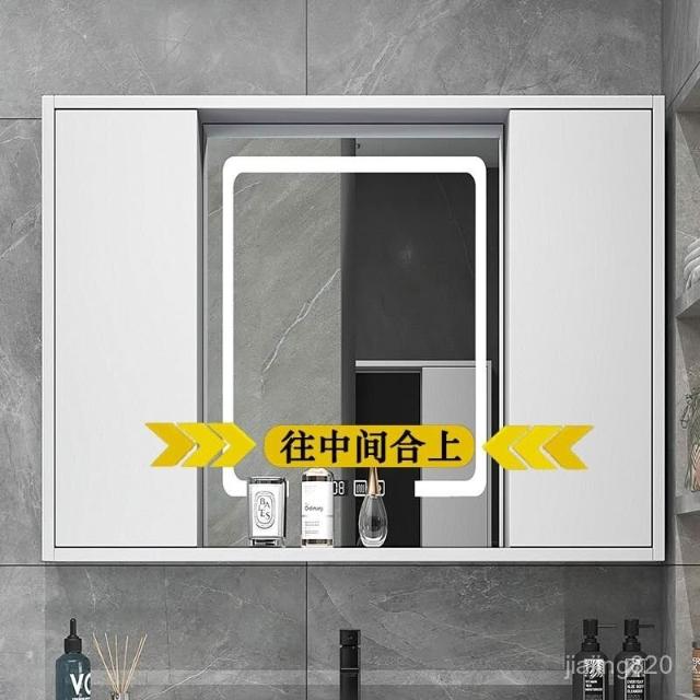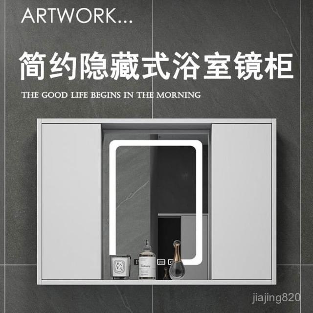 破損補寄/免運智能風水鏡櫃單獨隱藏式鏡子衛生間推拉鏡櫃掛墻式實木儲物置物櫃浴室鏡櫃 浴室鏡 收納櫃 洗浴鏡 掛牆式鏡麵櫃