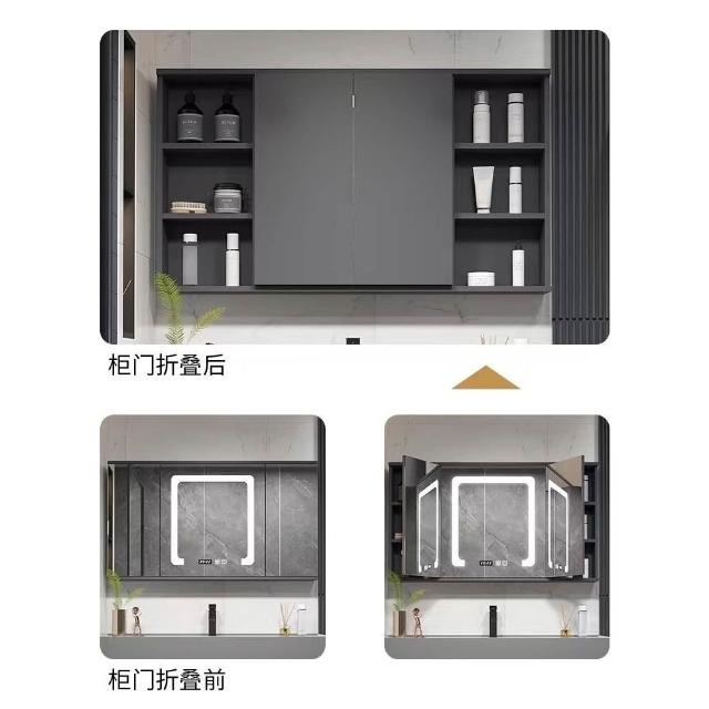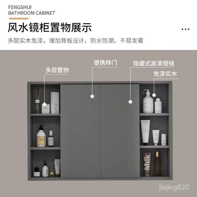破損補寄/免運智能實木隱藏風水鏡櫃衛生間折疊鏡子墻上推拉門鏡箱一體掛墻定製浴室鏡櫃 浴室鏡 收納櫃 洗浴鏡 掛牆式鏡麵櫃