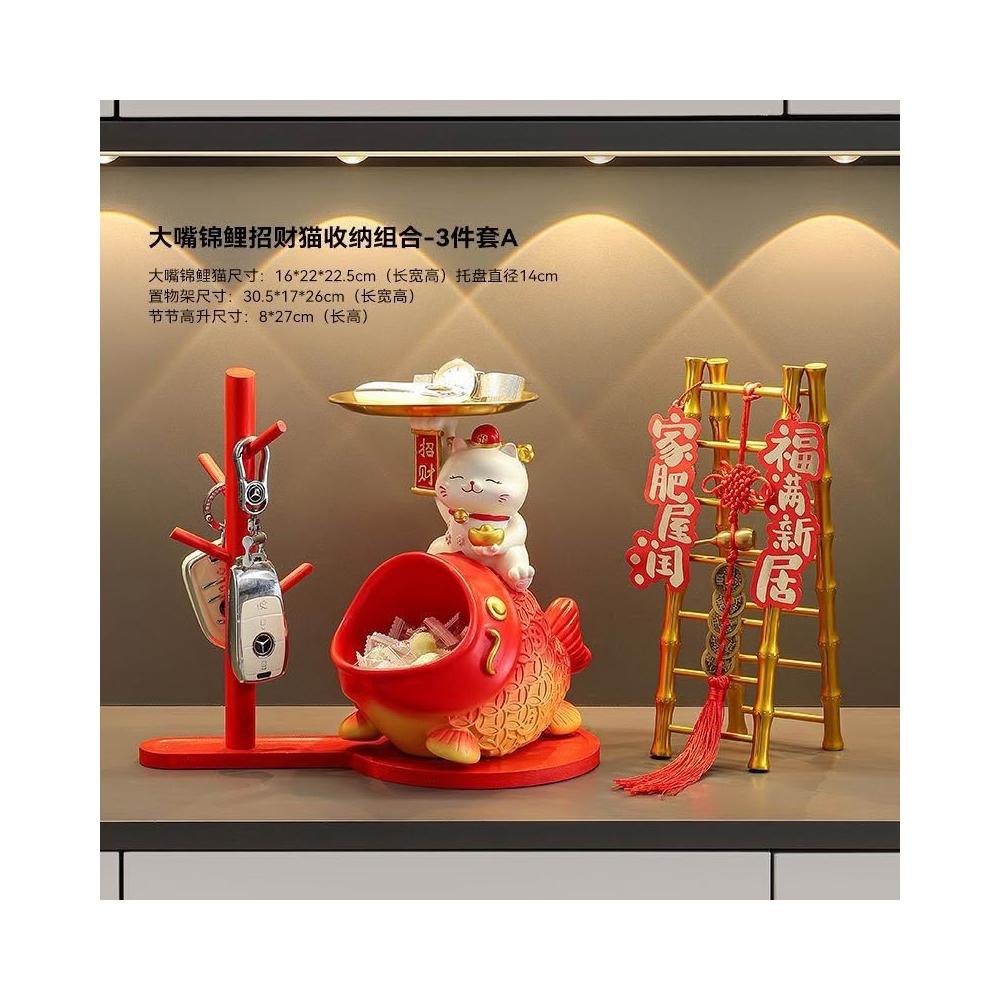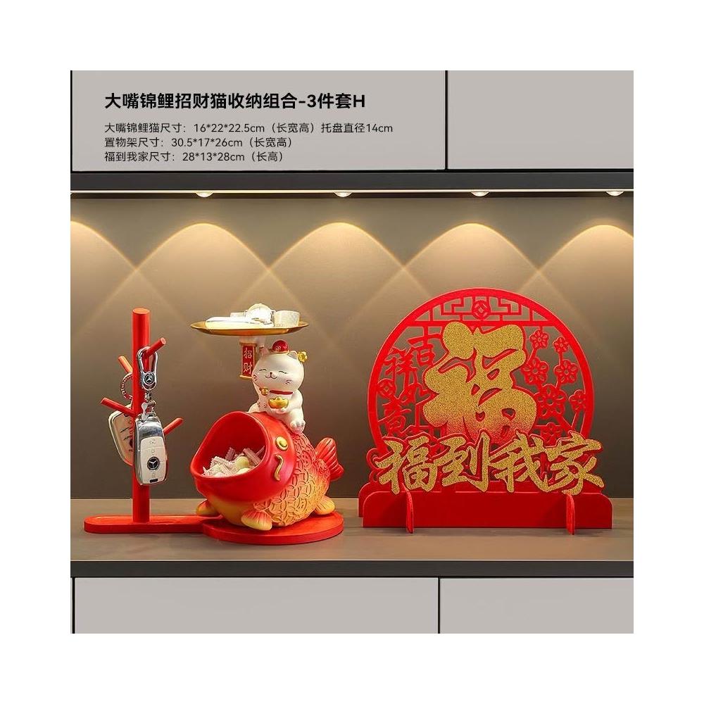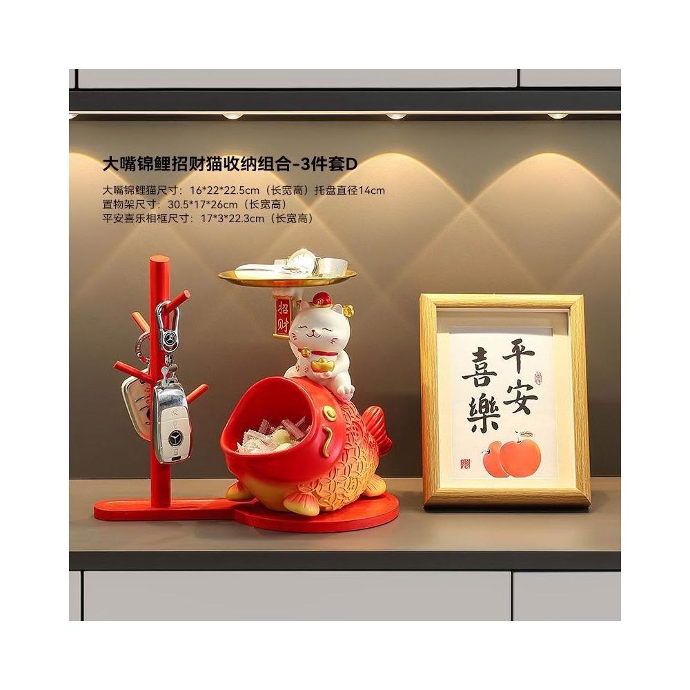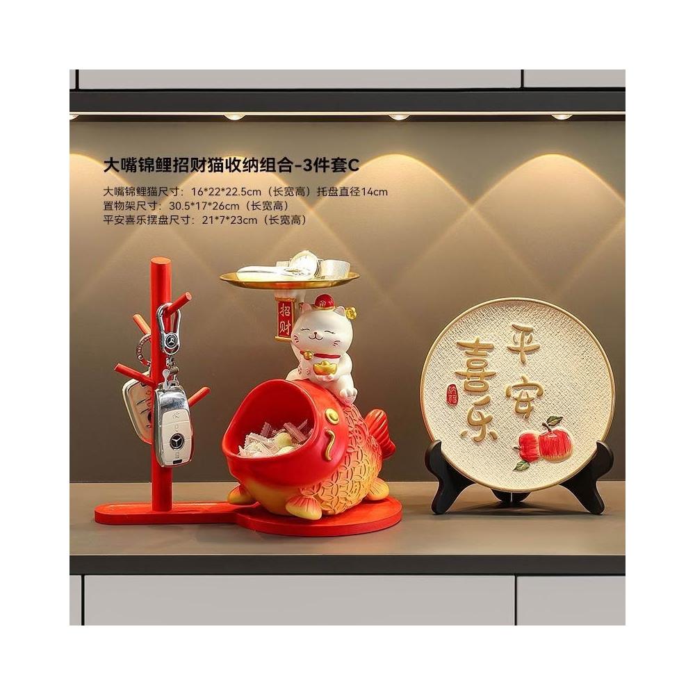 免運+上新特殺錦鯉招財貓入戶進門鑰匙收納玄關擺件新年家居裝飾品喬遷新居禮品鑰匙收納 輕奢 家居 裝飾品 擺設擺飾
